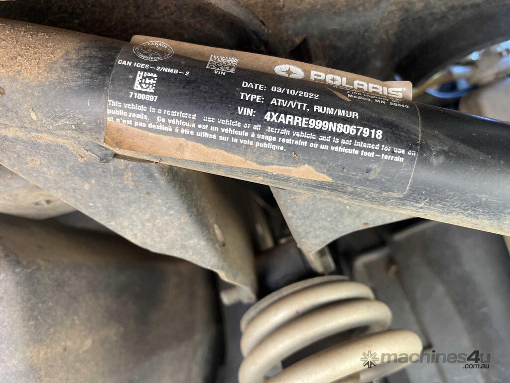 CP: CIRCA 2022,Polaris,Ranger XP,ATV,999 CC,1 Cyl,Petrol,Odometer not visible,0 (undefined),Unregistered,Chassis: 4XARRE999N8067918,Sold with No Plates,WOVR Status: WOVR N/A,Incident Type: Fire
