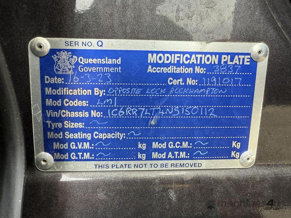 2022 RAM 1500 WARLOCK UTE, VIN: 1C6RR7LT4NS150112, E/N: ###, 70,003 KM SHOWING, NO REGISTRATION, CURRENT RWC. LOCATION: HALFERTY STREET, EMERALD, QLD 4720. INSPECTIONS & COLLECTIONS: MONDAY TO FRIDAY, 8AM TO 4PM. ENQUIRIES: RYAN OGDEN BROWN ON OR RYANEMERALDAUCTIONCENTRE