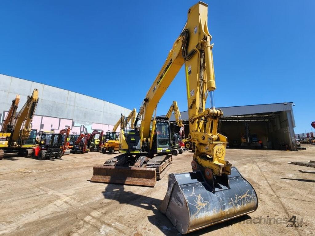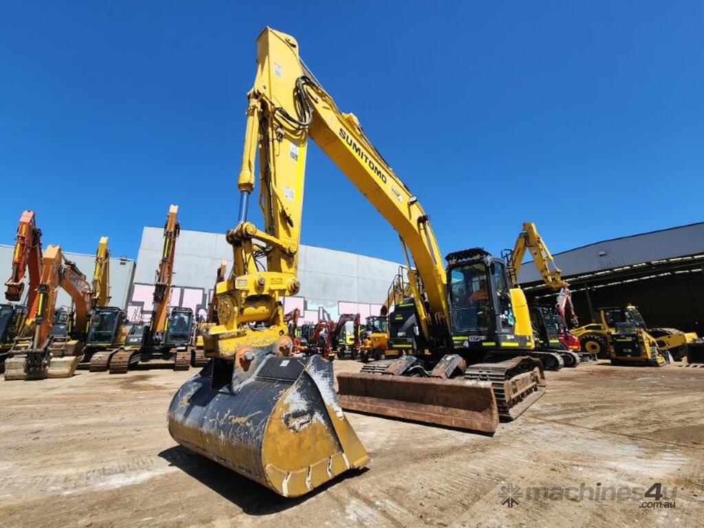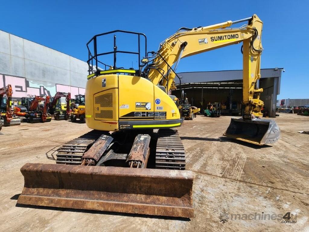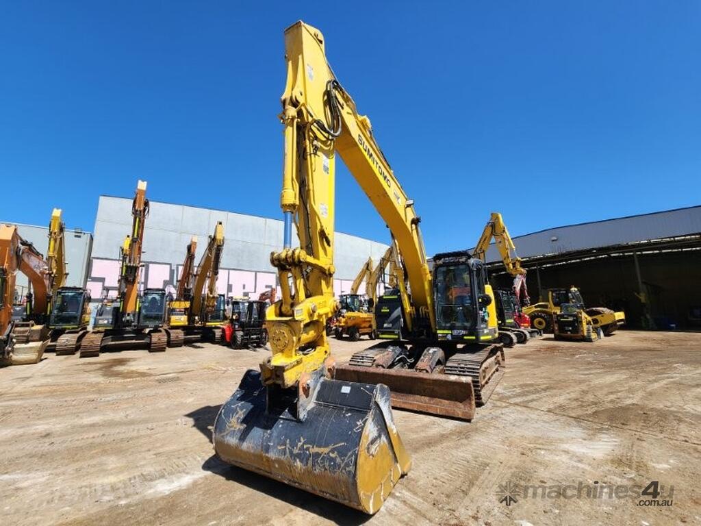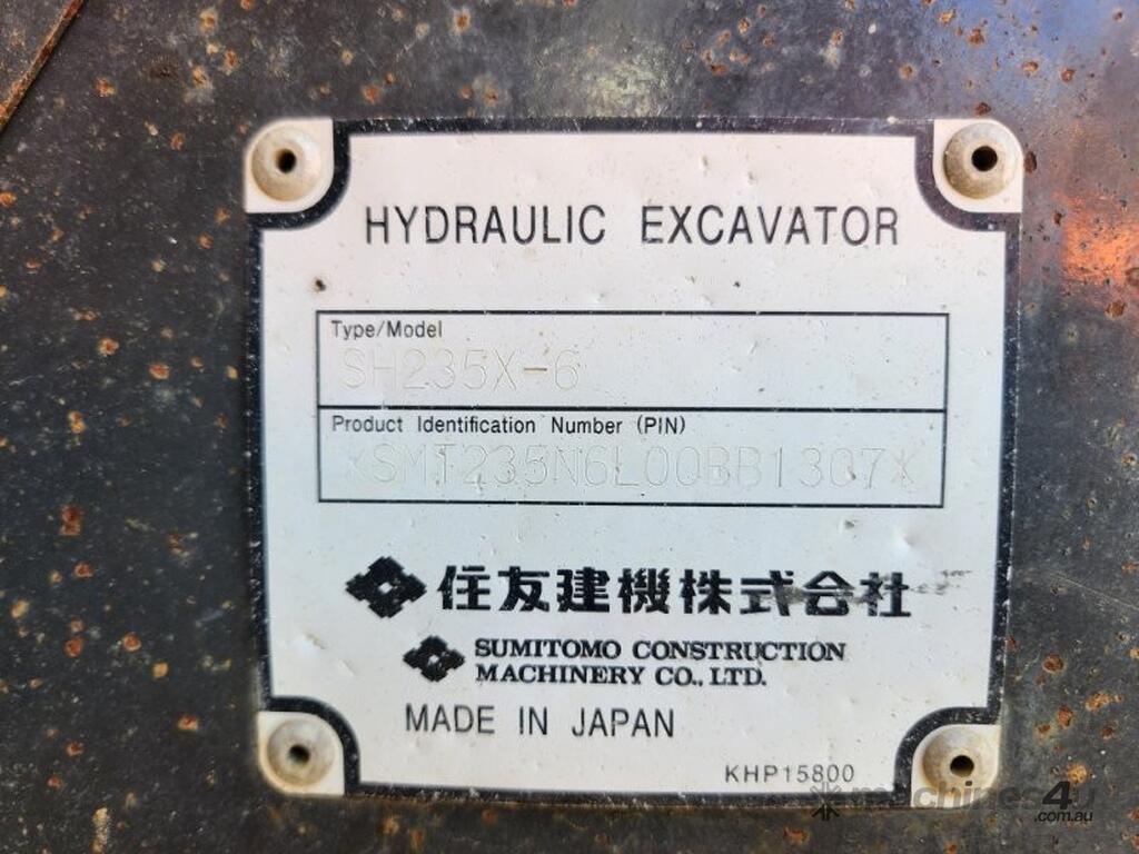 USED 2022 SUMITOMO SH235X-6 (E353) CURRENT MODEL 25T EXCAVATOR WITH TOPCON GPS WIRING, REDUCED RADIUS TAIL, LOW 3800 HRS, DOZER BLADE, STEEL TRACKS, TILTING HYDRAULIC HITCH, FULL A/C CABIN WITH ROPS, TWO WAY FLOW AUXILIARY HYDRAULICS, REAR VIEW CAMERA, SAFETY HANDRAILS, CHECK VALVES, UHF RADIO, E-STOPS, FULL CIVIL SPEC, GP AND MUD BUCKET.
