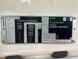 CP: 05/2022,Scania,R620,Prime Mover Sleeper Cab,Automatic,Airbag,8 Cyl,Diesel Turbo,706025 (Kms. Showing on Odometer),8651 (Hrs. Showing on Hour meter),Colour: White,Rego. No: NP(X084KK), Unregistered NAT,VIN: YS2R6X5,Key No: 411,GVM: 25900,GCM: 92000,Sold with No Plates,Key No: 411