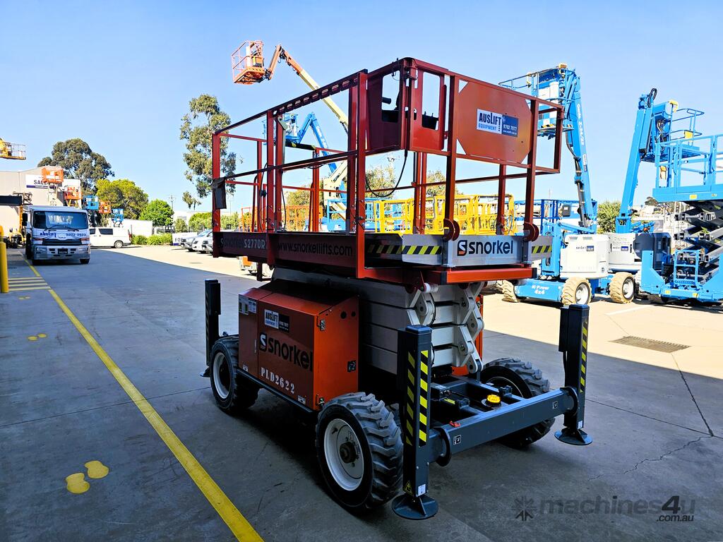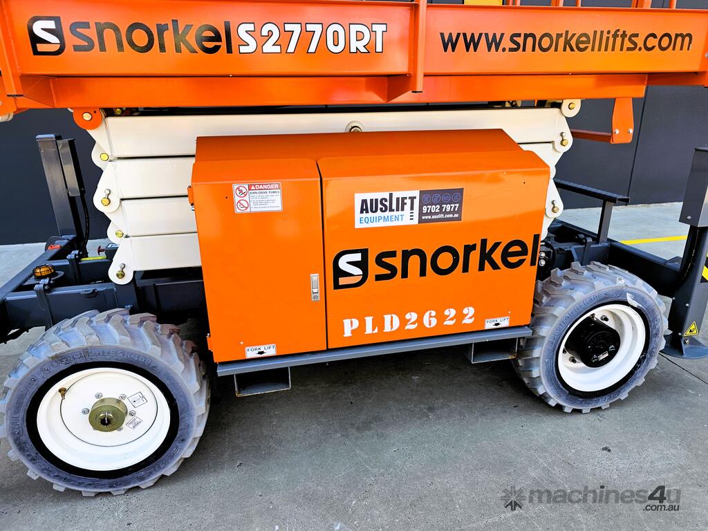 The 2022 Snorkel S2770RT is a high-performance rough terrain scissor lift, engineered to handle challenging outdoor environments. With only 13.5 hours of use, this lift is in nearly-new condition, offering outstanding reliability. It features a maximum working height of 10.1 metres and a spacious platform with a 580kg capacity, making it ideal for heavy-duty tasks that require both workers and equipment.