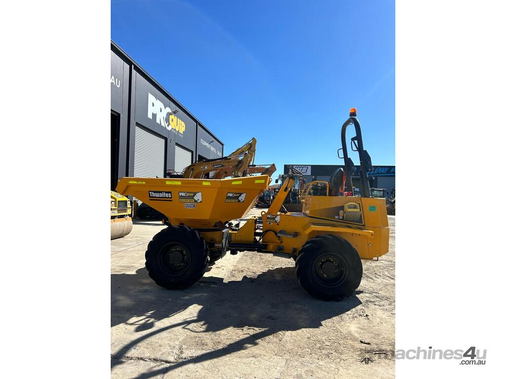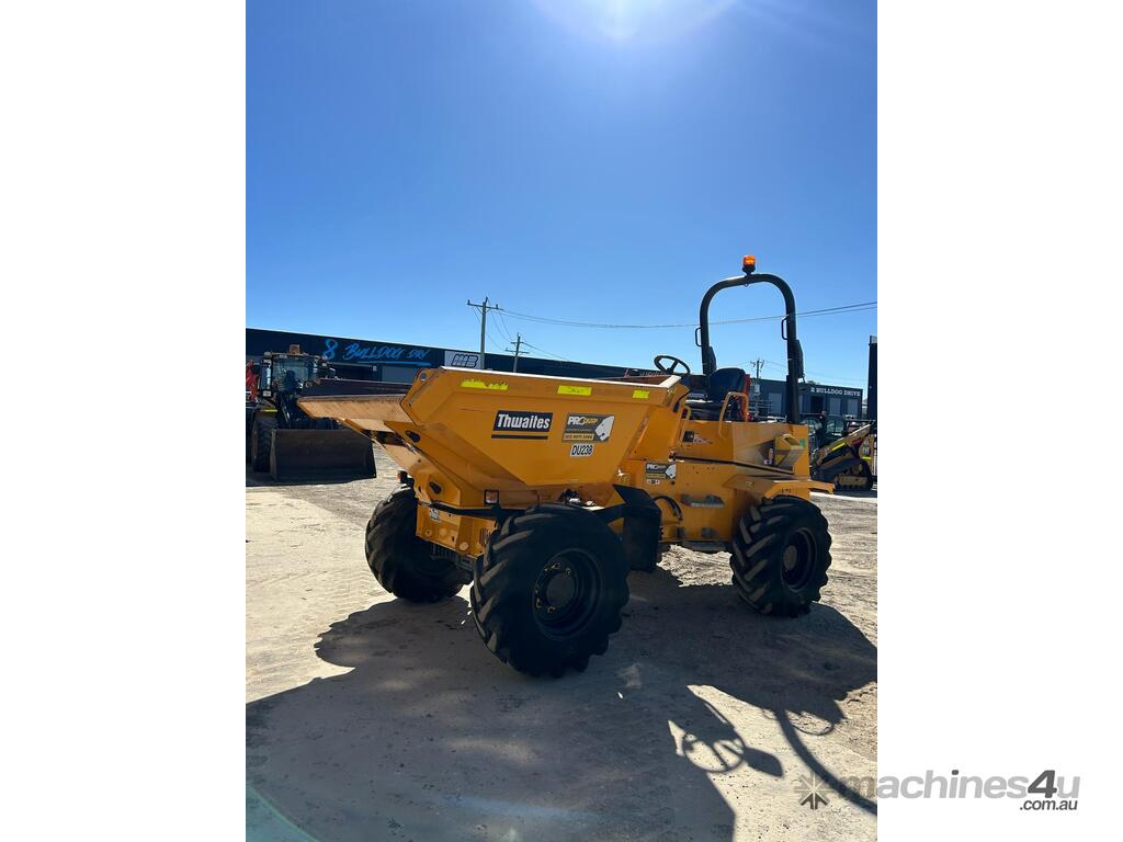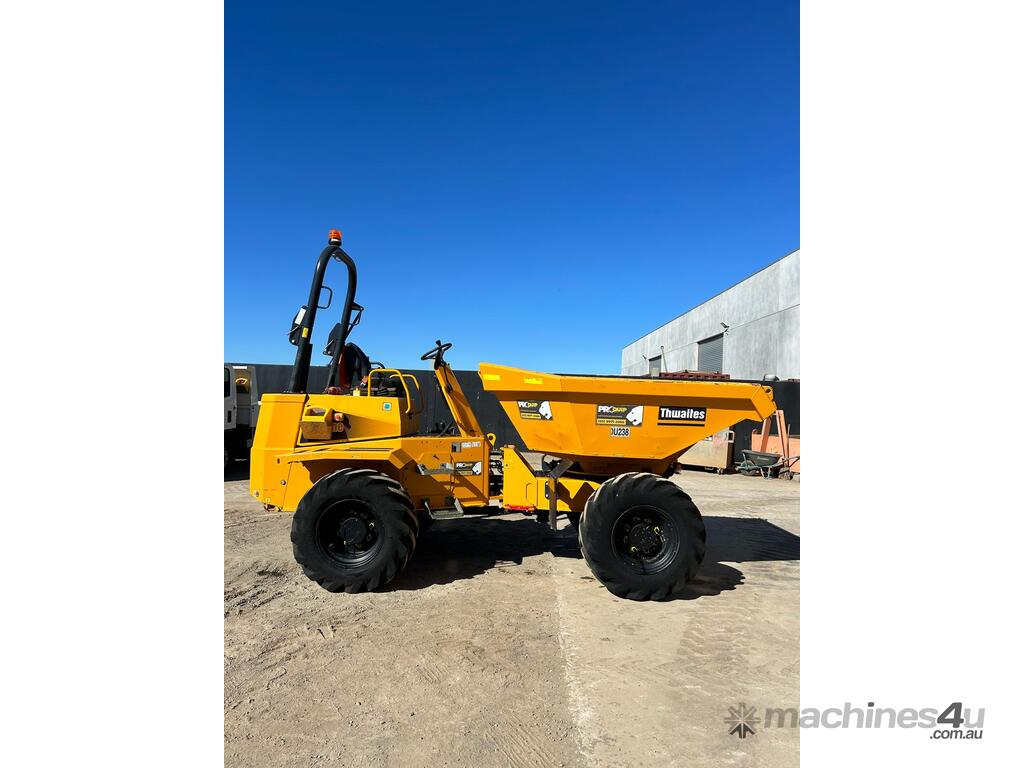 2022 THWAITES 6T ARTICULATED SWIVEL DUMPER (DU238) WITH 810 HRS. FOLDING ROPS, 4 WHEEL DRIVE, ROAD LIGHTS, POWERSHIFT TRANSMISSION WITH 4 SPEEDS IN FORWARD AND REVERSE, 180 DEGREE SWIVEL TRAY, 6000KG LOAD CAPACITY, FLOATATION TYRES, DIESEL ENGINE, ROTATING BEACON AND SQUAWKER REVERSE ALARM, TIER 1 CIVIL SPEC. ONE OWNER, FULL SERVICE HISTORY, READY FOR WORK.