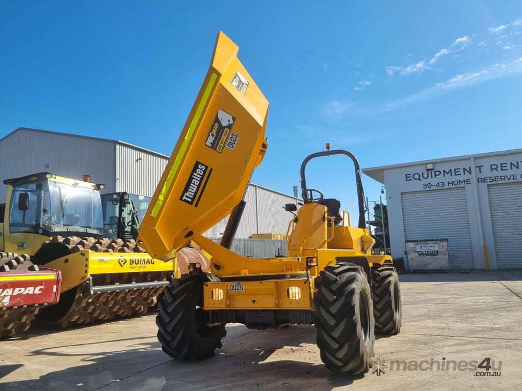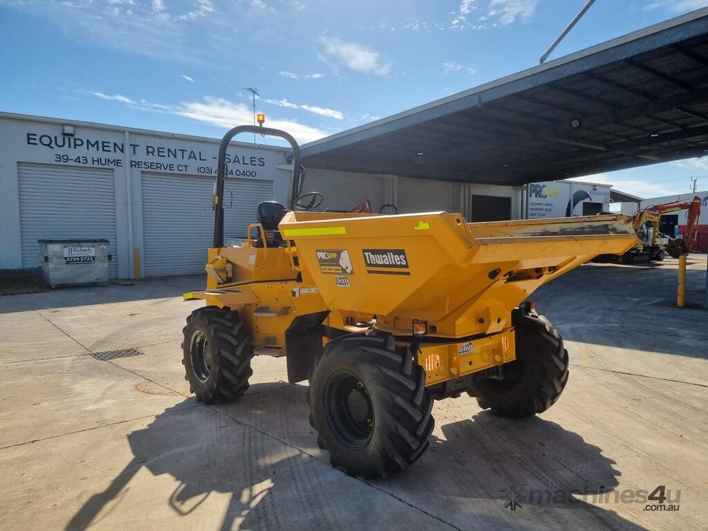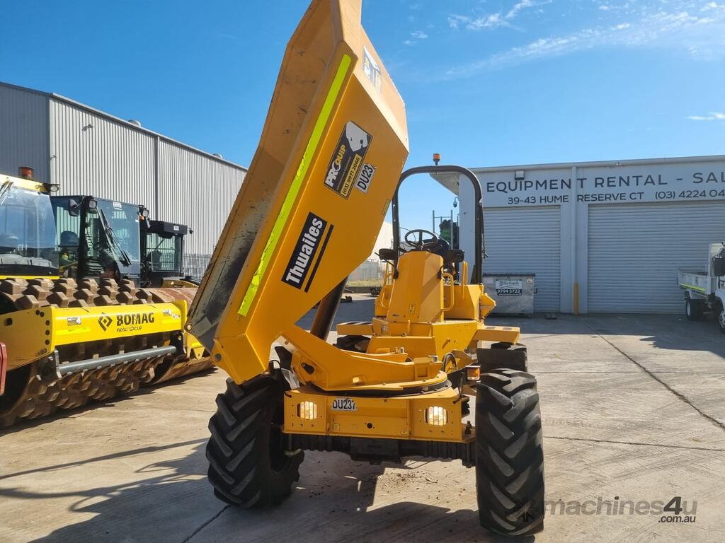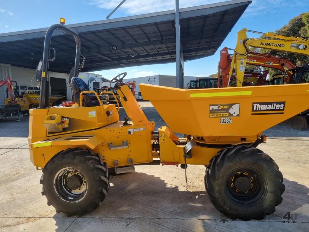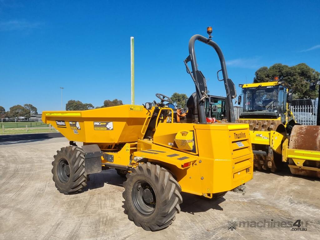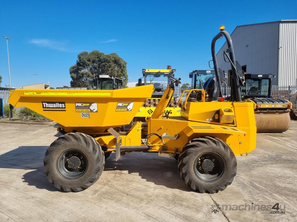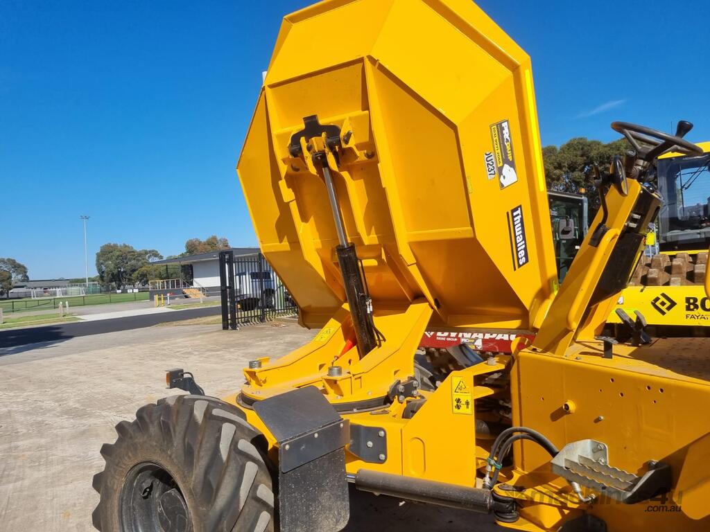 2022 THWAITES 6T ARTICULATED SWIVEL DUMPER (DU237) WITH 490 HRS. FOLDING ROPS, 4 WHEEL DRIVE, ROAD LIGHTS, POWERSHIFT TRANSMISSION WITH 4 SPEEDS IN FORWARD AND REVERSE, 180 DEGREE SWIVEL TRAY, 6000KG LOAD CAPACITY, FLOATATION TYRES, DIESEL ENGINE, ROTATING BEACON AND SQUAWKER REVERSE ALARM, TIER 1 CIVIL SPEC. ONE OWNER, FULL SERVICE HISTORY, READY FOR WORK.