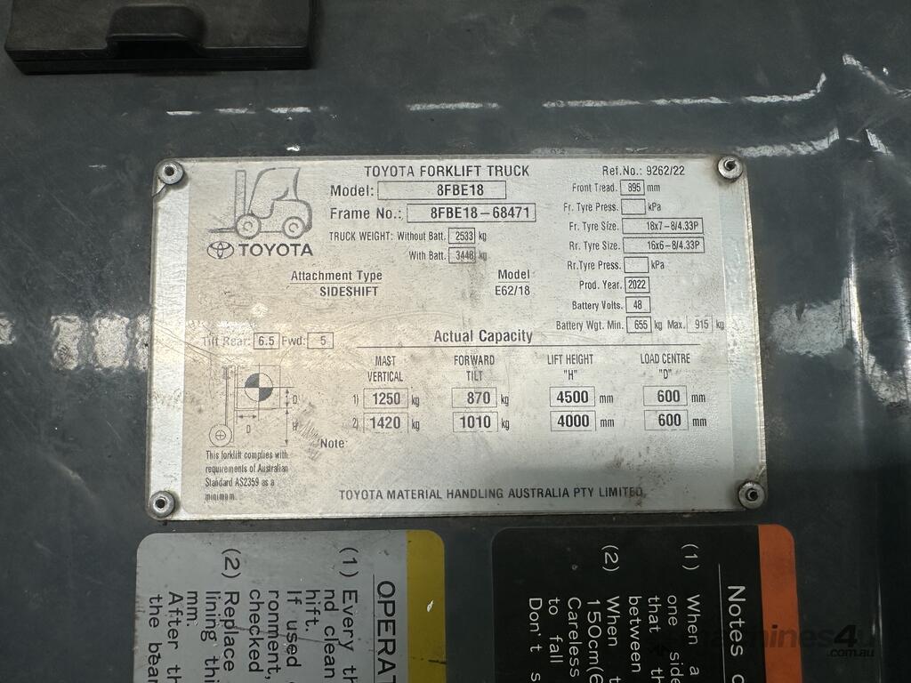 2022 Toyota 8FBE18 Electric Forklift :      Ask for Price