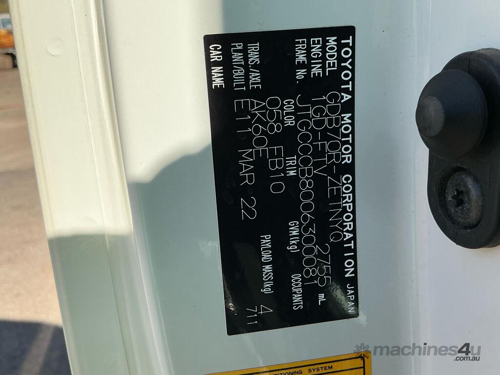 CP: 04/2022,Toyota,Coaster 70 Series,22 Seat Bus,Automatic,4 Cyl,Diesel Turbo,26971 (Kms. Showing on Odometer),Hourmeter not visible,Colour: White,Rego. No: 1HPT720 WA,VIN: JTGCCCB,Key No: 262,Length: 7150 m,GVM: 5235,Sold with No Plates,Key No: 262