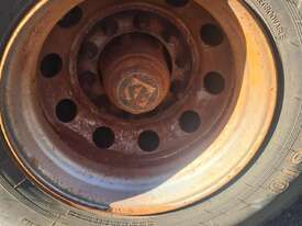 integrated air tank system. It’s fitted with 11R22.5 tyres on steel wheels and has been set up for multi-trailer hauling. The unit shows surface rust.