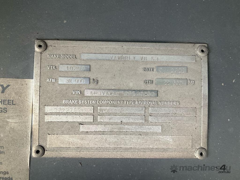 CP: 01/2022,Vawdrey,VB S3,Tri Axle Double Drop Curtainside A Trailer,756441 (Kms. Showing on Hubometer),Colour: White,Rego. No: NP(YQ38PI), Unregistered,VIN: 6HJVAWAUS0SE40250,Sold with No Plates