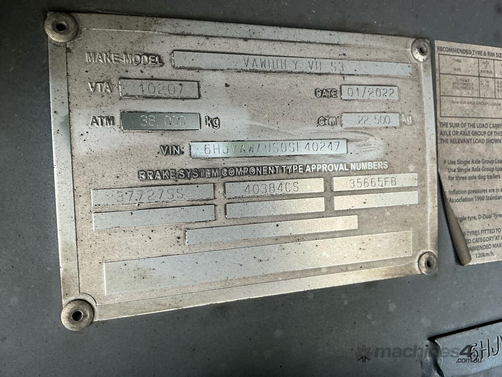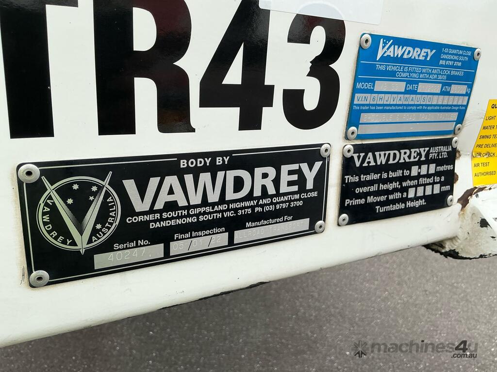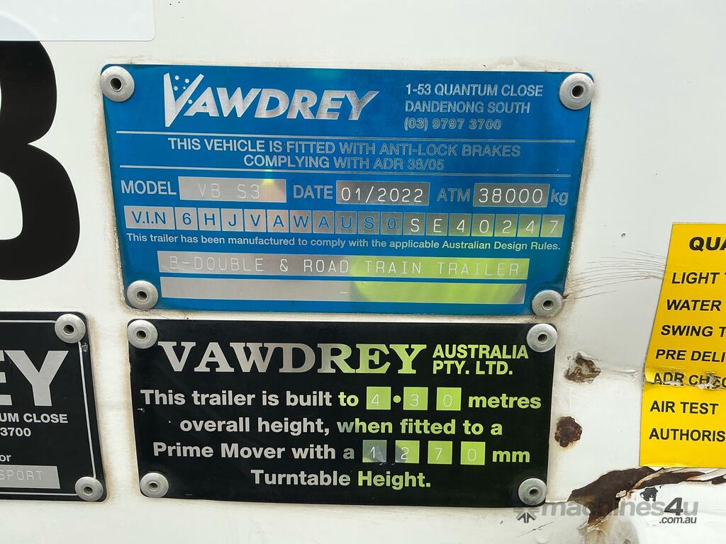CP: 01/2022,Vawdrey,VB S3,Tri Axle Double Drop Curtainside A Trailer,762101 (Kms. Showing on Hubometer),Colour: White,Rego. No: NP(YQ32PI), Unregistered,VIN: 6HJVAWAUS0SE40247,Sold with No Plates