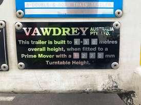 CP: 01/2022,Vawdrey,VB S3,Tri Axle Double Drop Curtainside B Trailer,Hubometer not visible,Colour: White,Rego. No: NP(YQ39PI), Unregistered,VIN: 6HJVAWAUS0SE40256,Sold with No Plates