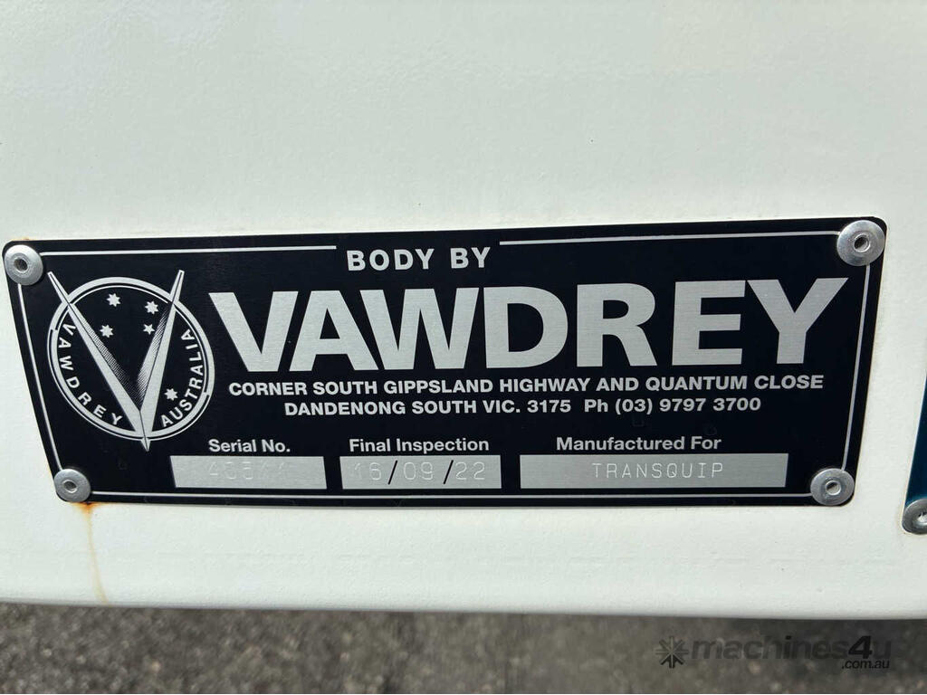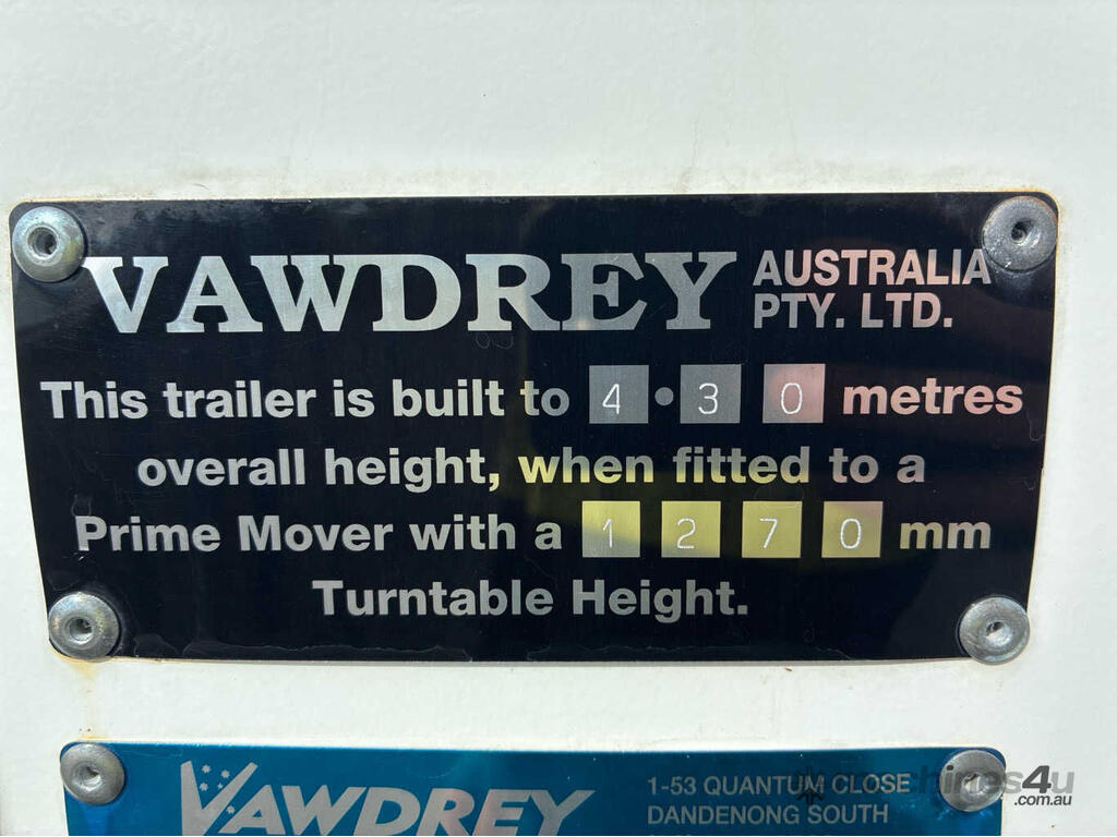CP: 09/2022,Vawdrey,VB S3,Tri Axle Drop Deck Curtainsider A Trailer,1912 (Kms. Showing on Hubometer),Colour: Silver,Unregistered,VIN: 6HJVAWAUS0SE40511,Sold with No Plates