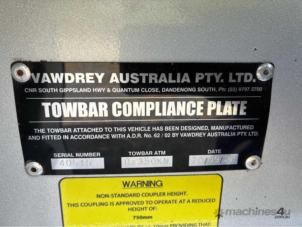 CP: 09/2022,Vawdrey,VB S3,Tri Axle Drop Deck Curtainsider B Trailer,1824 (Kms. Showing on Hubometer),Colour: White,Unregistered,VIN: 6HJVAWAUS0SE40515,Sold with No Plates