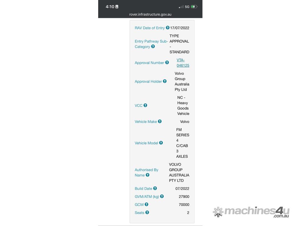 CP: 07/2022,Volvo,FM 500,Prime Mover Sleeper Cab,Automatic,6 Cyl,Diesel,Odometer not visible,Hourmeter not visible,Colour: White,Rego. No: NP(XP17JB), Unregistered,VIN: YV2XG30D1NA302337,Length: 6.7 m,GVM: 27900,GCM: 70000,Sold with No Plates,WOVR Status: Repairable Write-Off,Incident Type: Impact