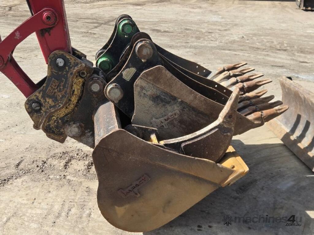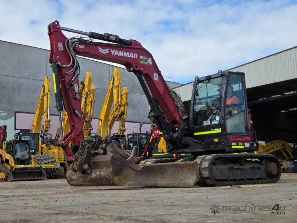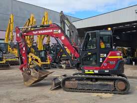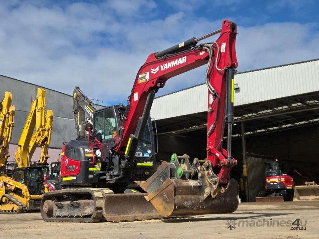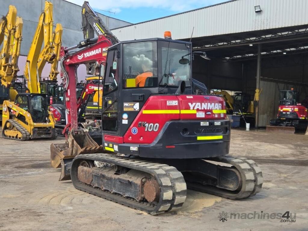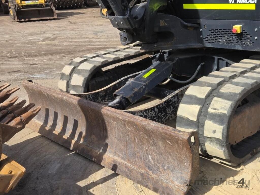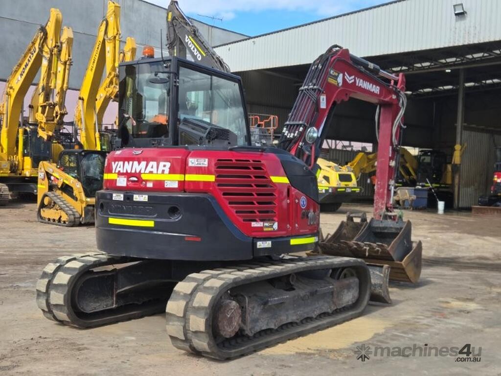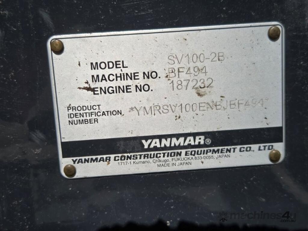 2022 YANMAR SV100-2 EXCAVATOR (E381) WITH 1450 HRS, FULL CIVIL SPEC WITH UHF RADIO, E-STOPS, BATTERY ISOLATORS, FIRE EXTINGUISHER, REVERSING SQUAWKER, 10t OPERATING WEIGHT, REDUCED TAIL SWING, RUBBER TRACKS, SWIVEL BOOM, FULL A/C CABIN WITH ROPS, DOZER BLADE, AUXILIARY HYDRAULICS WITH PROPORTIONAL CONTROLS, AUTO IDLE FUNCTION, TRAVEL ALARMS, HYDRAULIC QUICK HITCH, 450 & 600mm DIG BUCKETS AND MUD BUCKET. RISK ASSESSMENT, FULLY SERVICED AND READY TO WORK. AUSTRALIAN DELIVERED SEPTEMBER 2022, FACTORY WARRANTY TO 15/09/2026