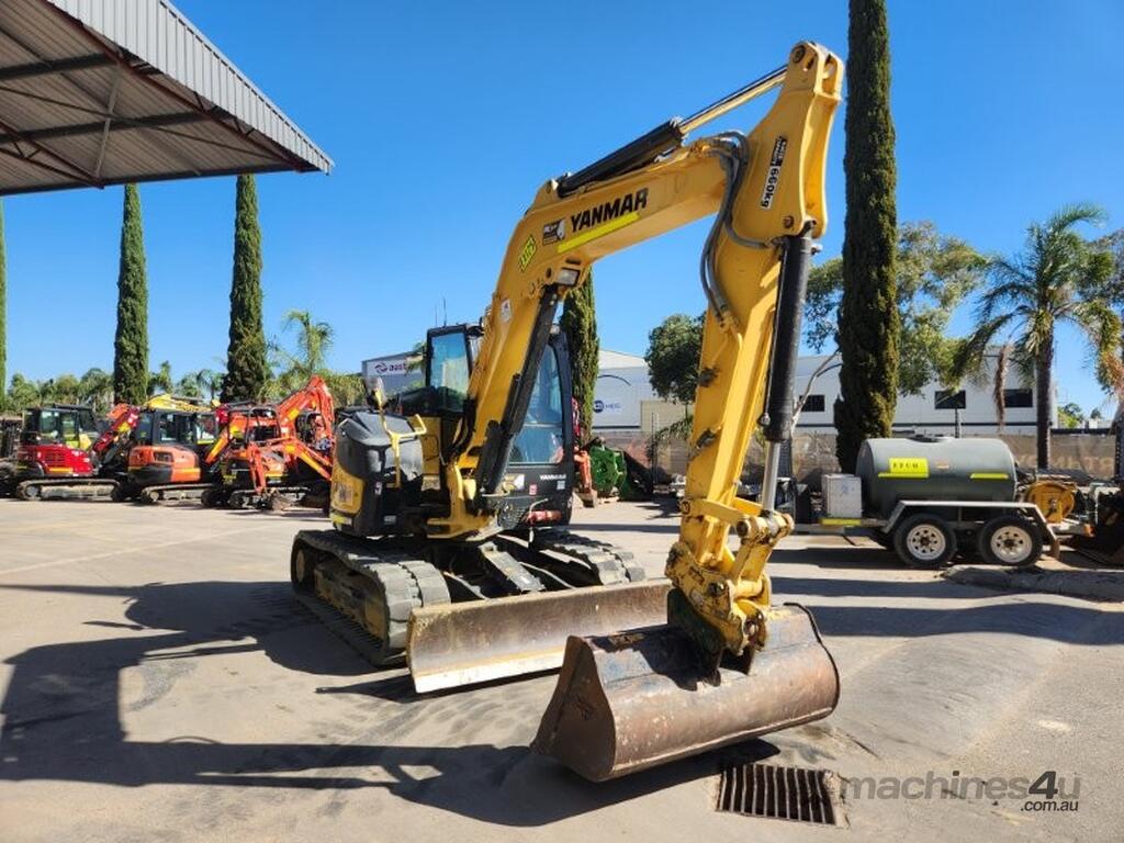 2022 YANMAR SVT EXCAVATOR (EX125) WITH 1791 HRS, FULL CIVIL SPEC WITH UHF RADIO, E-STOPS, BATTERY ISOLATORS, FIRE EXTINGUISHER, REVERSING SQUAWKER, 10t OPERATING WEIGHT, REDUCED TAIL SWING, RUBBER TRACKS, SWIVEL BOOM, FULL A/C CABIN WITH ROPS, DOZER BLADE, DUAL AUXILIARY HYDRAULICS WITH PROPORTIONAL CONTROLS, AUTO IDLE FUNCTION, TRAVEL ALARMS, HYDRAULIC QUICK HITCH, 450 & 600mm DIG BUCKETS AND MUD BUCKET. RISK ASSESSMENT, FULLY SERVICED AND READY TO WORK. AUSTRALIAN DELIVERED JANUARY 2022, 3-MONTH DRIVETRAIN WARRANTY. THIS UNIT LOCATED IN PERTH WA.