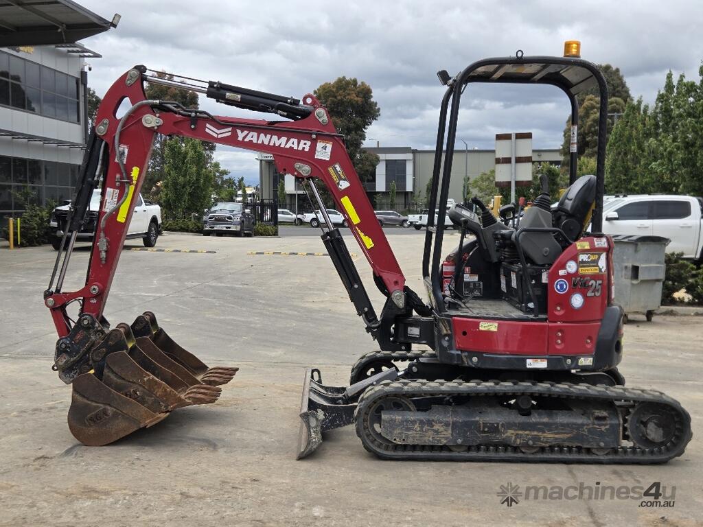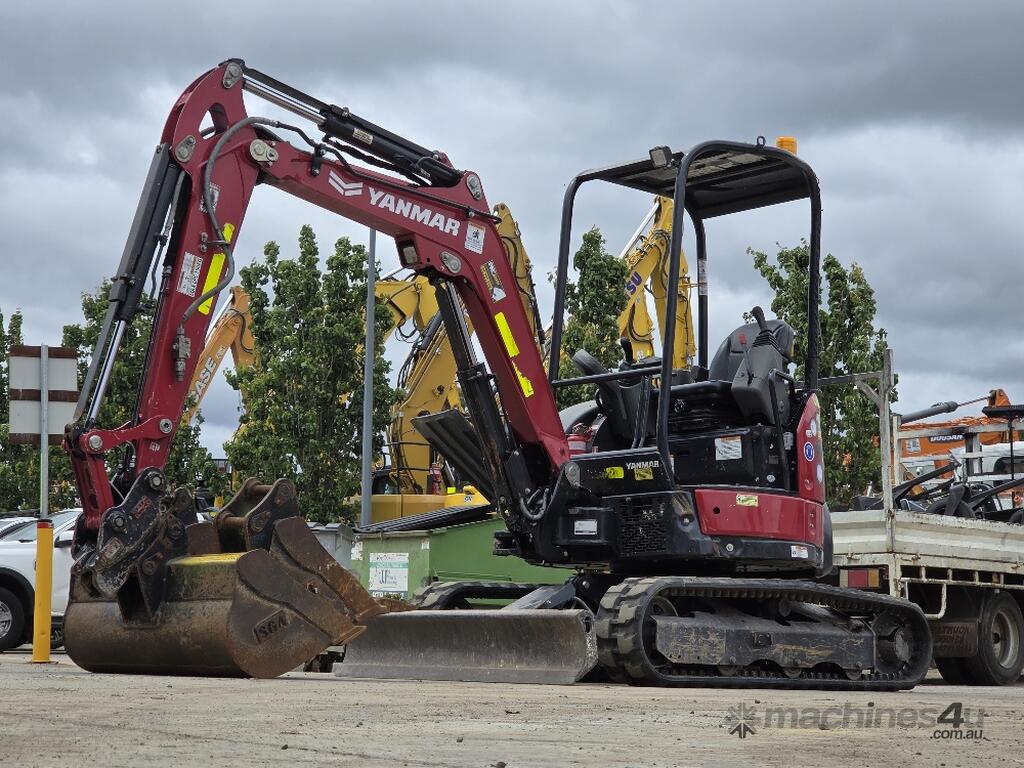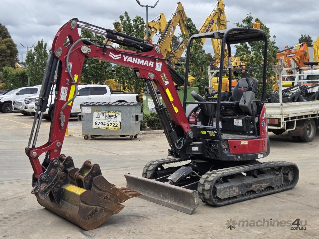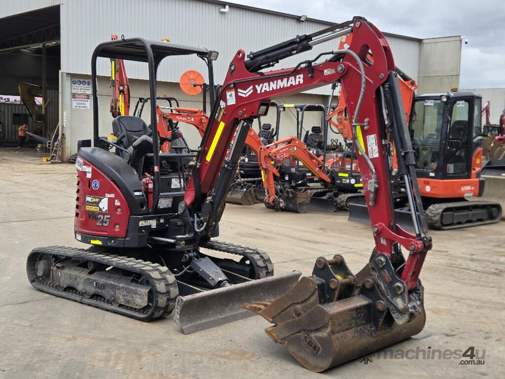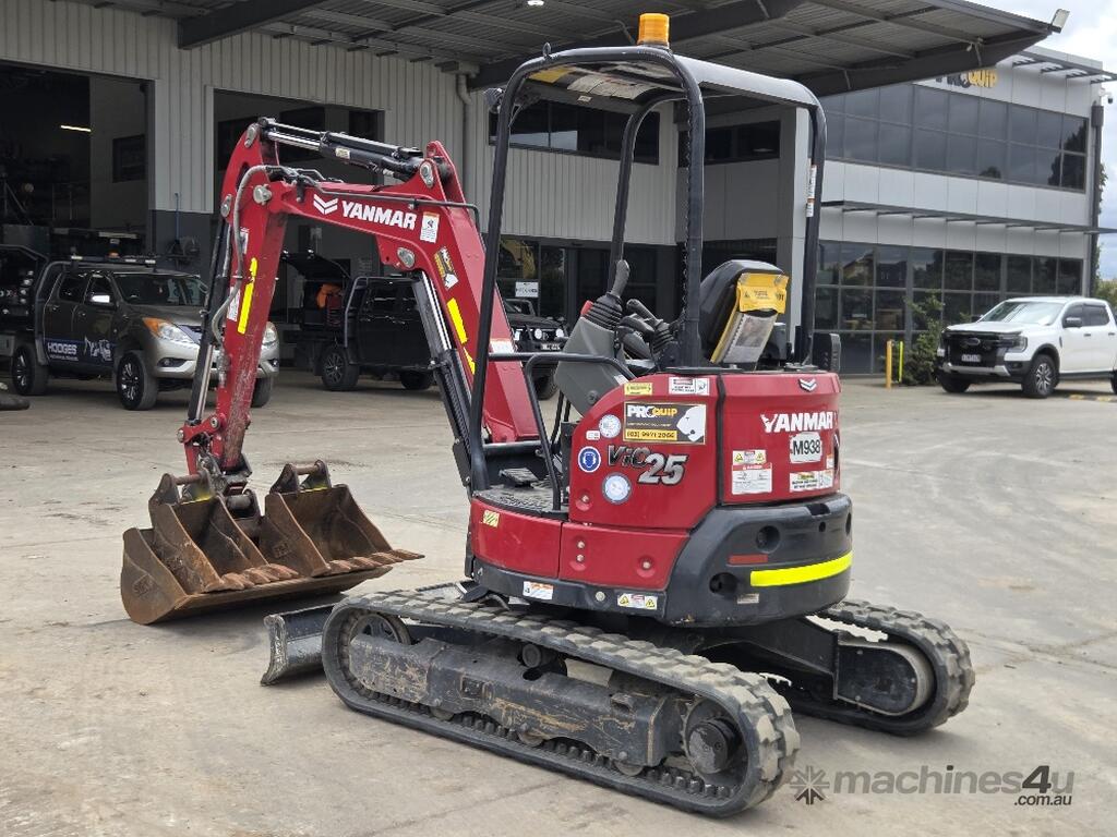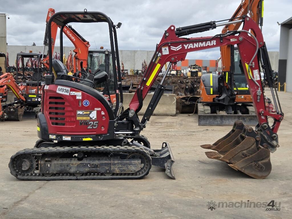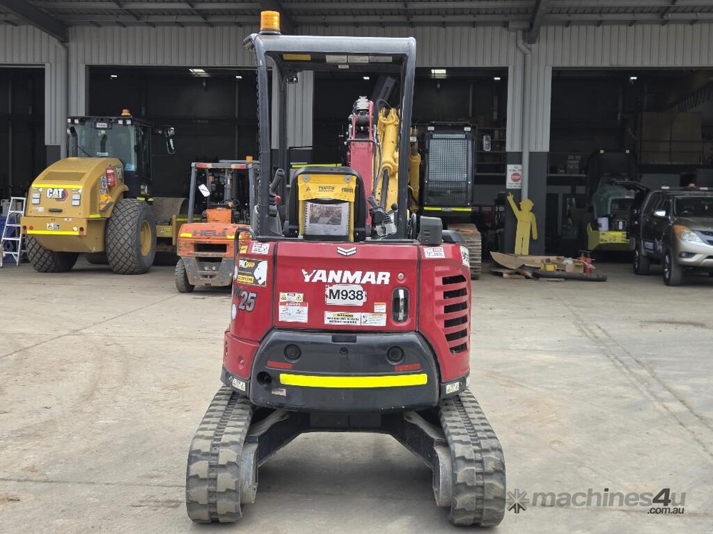 2022 YANMAR VIO25-6 ZERO TAIL 2.7T EXCAVATOR (M938) WITH CANOPY, ROPS, 950 HRS, 2 SPEED, RUBBER TRACKS, DOZER BLADE, HYDRAULIC HITCH, PROPORTIONAL CONTROL AUXILIARY HAMMER AND AUGER PIPING, 300 & 450mm DIGGING BUCKETS, MUD BUCKET, E-STOPS, BATTERY ISOLATOR, FIRE EXTINGUISHER AND RISK ASSESSMENT. VERY GOOD CONDITION, FULLY SERVICE HISTORY AND READY FOR WORK. AUSTRALIAN DELIVERED MAY 2022, BALANCE OF FACTORY WARRANTY APPLIES TO 15/05/2026.