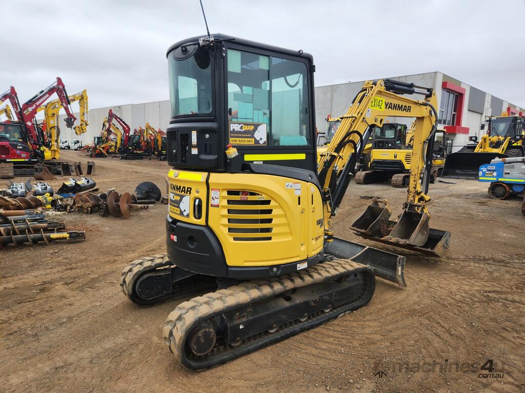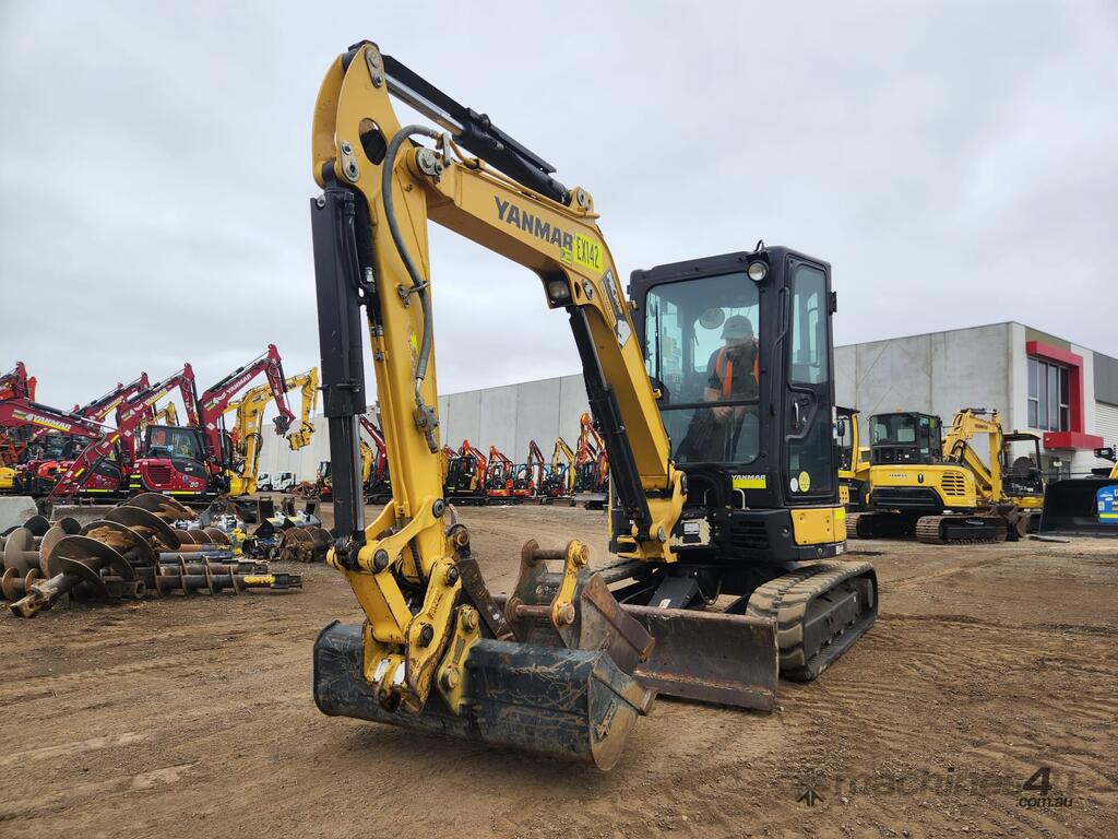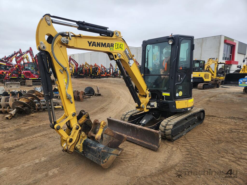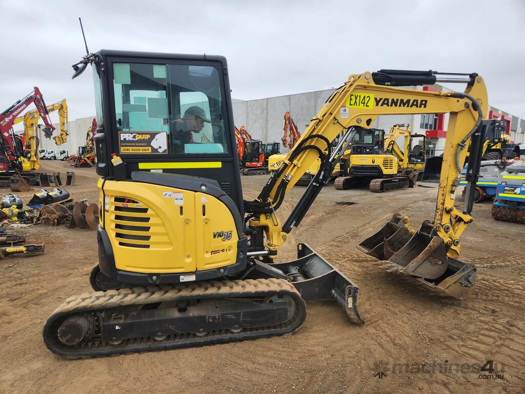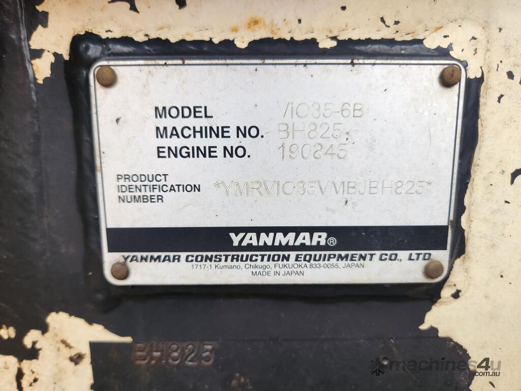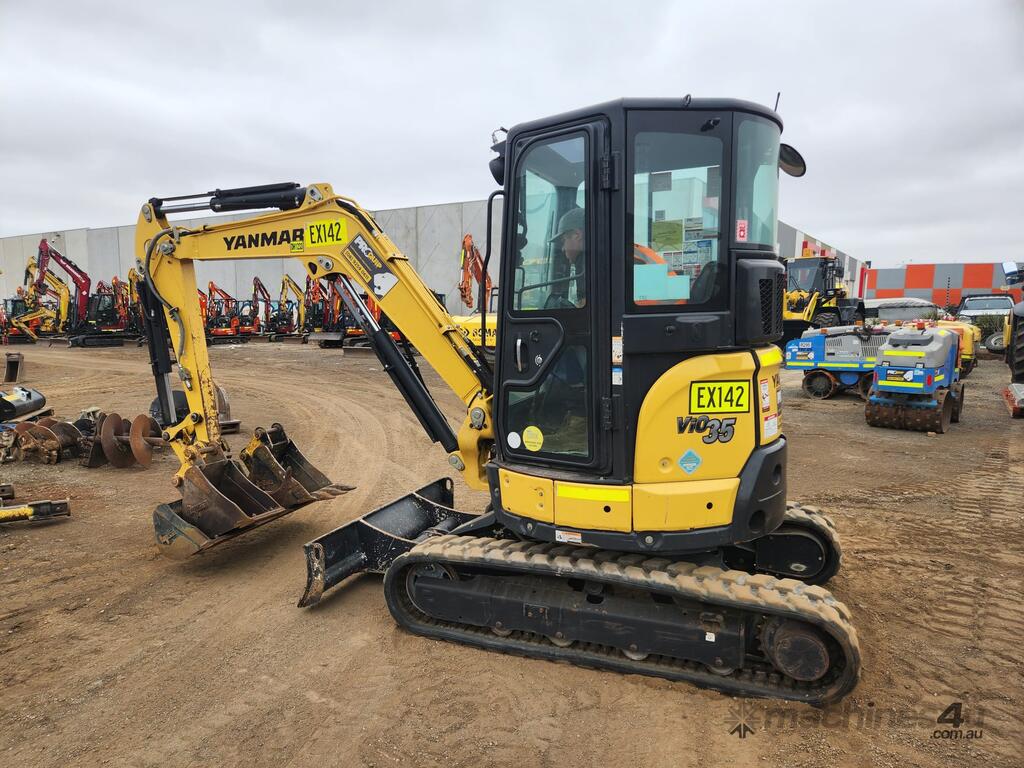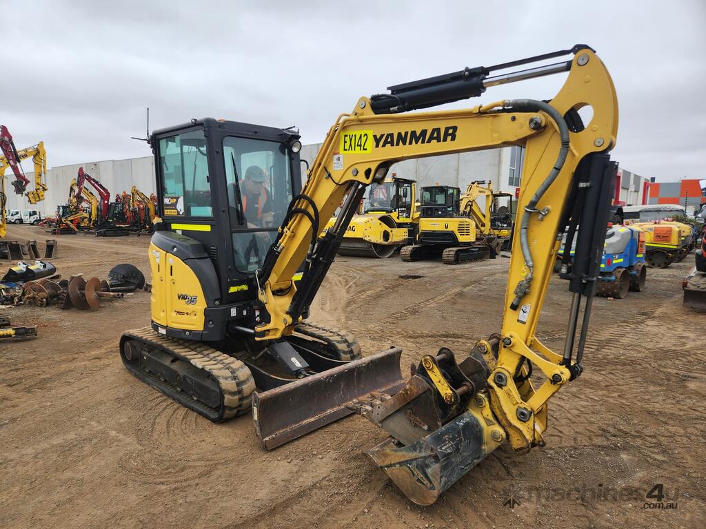 2022 YANMAR VIO35-6 ZERO TAIL 3.7T ZERO TAIL EXCAVATOR (EX142) WITH FULL A/C CABIN, ROPS, 1505 HRS, 2 SPEED, RUBBER TRACKS, DOZER BLADE, HYDRAULIC HITCH, PROPORTIONAL CONTROL AUXILIARY HAMMER AND AUGER PIPING, 300 & 450mm DIGGING BUCKETS, MUD BUCKET, E-STOPS, BATTERY ISOLATOR, UHF RADIO, FIRE EXTINGUISHER AND RISK ASSESSMENT. VERY GOOD CONDITION, FULL SERVICE HISTORY AND READY FOR WORK. AUSTRALIAN DELIVERED APRIL 2022, BALANCE OF FACTORY WARRANTY APPLIES TO 29/04/2026