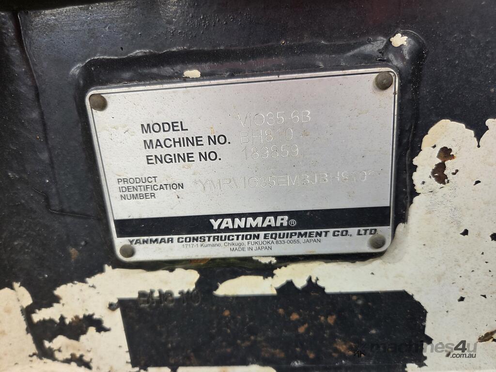 2022 YANMAR VIO35-6 ZERO TAIL 3.7T ZERO TAIL EXCAVATOR (M849) WITH FULL A/C CABIN, ROPS, 1165 HRS, 2 SPEED, RUBBER TRACKS, DOZER BLADE, HYDRAULIC HITCH, PROPORTIONAL CONTROL AUXILIARY HAMMER AND AUGER PIPING, 300 & 450mm DIGGING BUCKETS, MUD BUCKET, E-STOPS, BATTERY ISOLATOR, UHF RADIO, FIRE EXTINGUISHER AND RISK ASSESSMENT. VERY GOOD CONDITION, FULLY SERVICE HISTORY AND READY FOR WORK. AUSTRALIAN DELIVERED APRIL 2022, BALANCE OF FACTORY WARRANTY APPLIES TO 8/04/2026