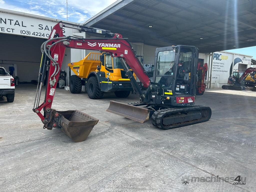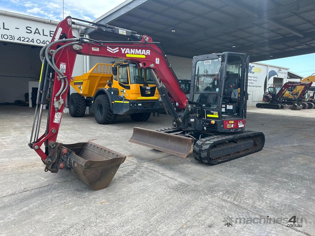 2022 YANMAR VIO55-6 ZERO TAIL 5.6T EXCAVATOR (M992) WITH FULL A/C CABIN, ROPS, LOW 1195 HRS, SAFETY HYDRAULIC HITCH, AUTO IDLE FUNCTION, 2 SPEED, RUBBER TRACKS, DOZER BLADE, PROPORTIONAL CONTROL AUXILIARY HAMMER AND AUGER PIPING, 300, 450 & 600mm DIGGING BUCKETS, MUD BUCKET, UHF RADIO, FULL CIVIL SPEC AND RISK ASSESSMENT. VERY TIGHT CONDITION AND READY FOR WORK, AUSTRALIAN DELIVERED JANUARY 2023, BALANCE OF FACTORY WARRANTY TO 17/01/2027.
