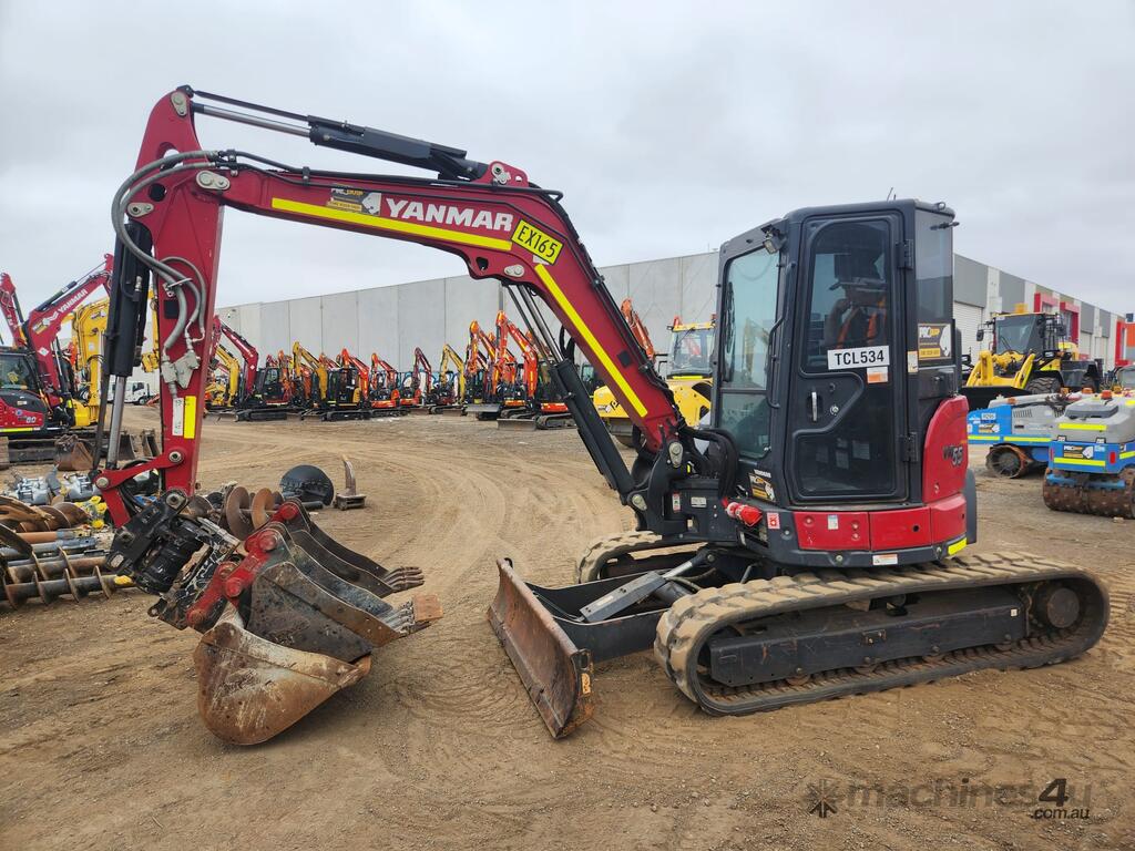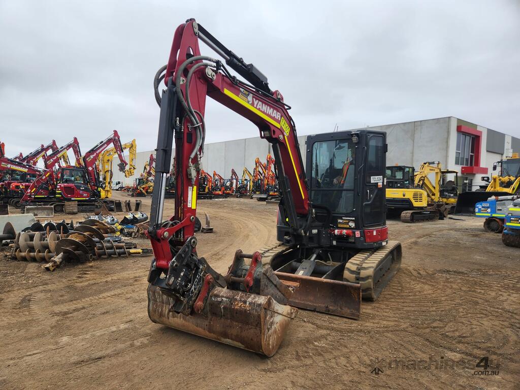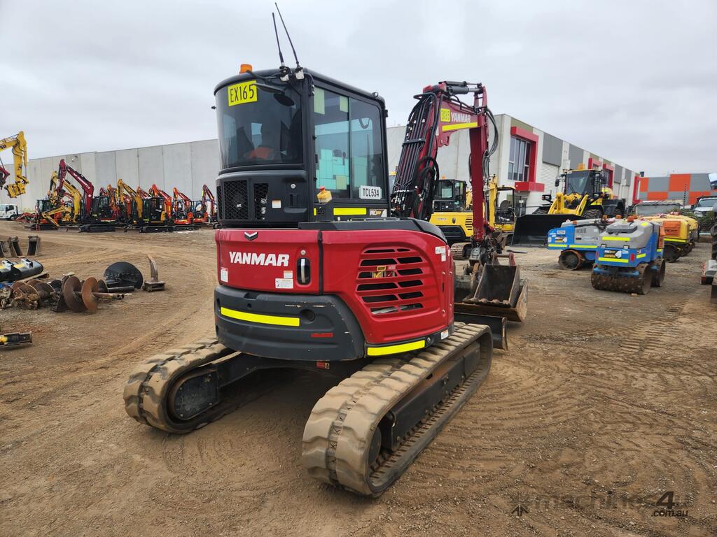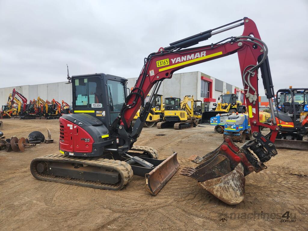 2022 YANMAR VIO55-6 ZERO TAIL 5.6T EXCAVATOR (EX165) WITH FULL A/C CABIN, TILTING HYDRAULIC SAFETY HITCH, ROPS, 2095 HRS, AUTO IDLE FUNCTION, 2 SPEED, RUBBER TRACKS, DOZER BLADE, PROPORTIONAL CONTROL AUXILIARY HAMMER AND AUGER PIPING, 300, 450 & 600mm DIGGING BUCKETS, MUD BUCKET, UHF RADIO, FULL CIVIL SPEC AND RISK ASSESSMENT. VERY TIGHT CONDITION AND READY FOR WORK, AUSTRALIAN DELIVERED AUGUST 2022, BALANCE OF FACTORY WARRANTY TO 5/08/2026