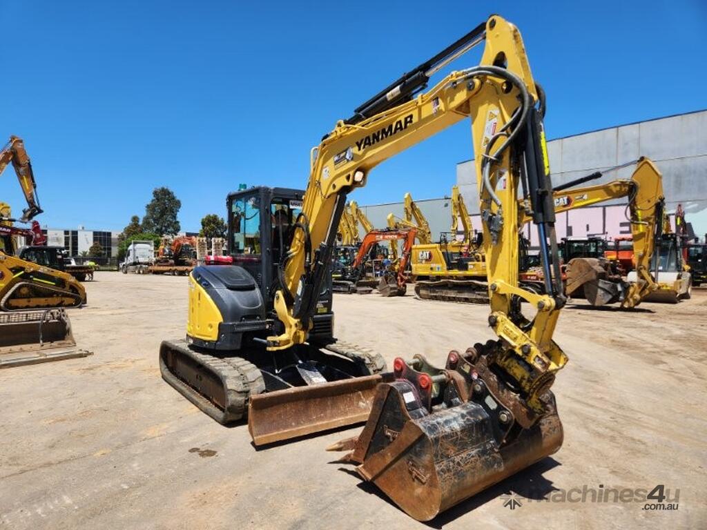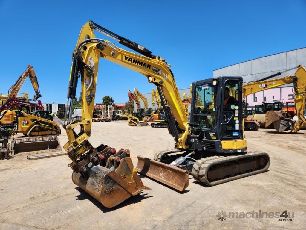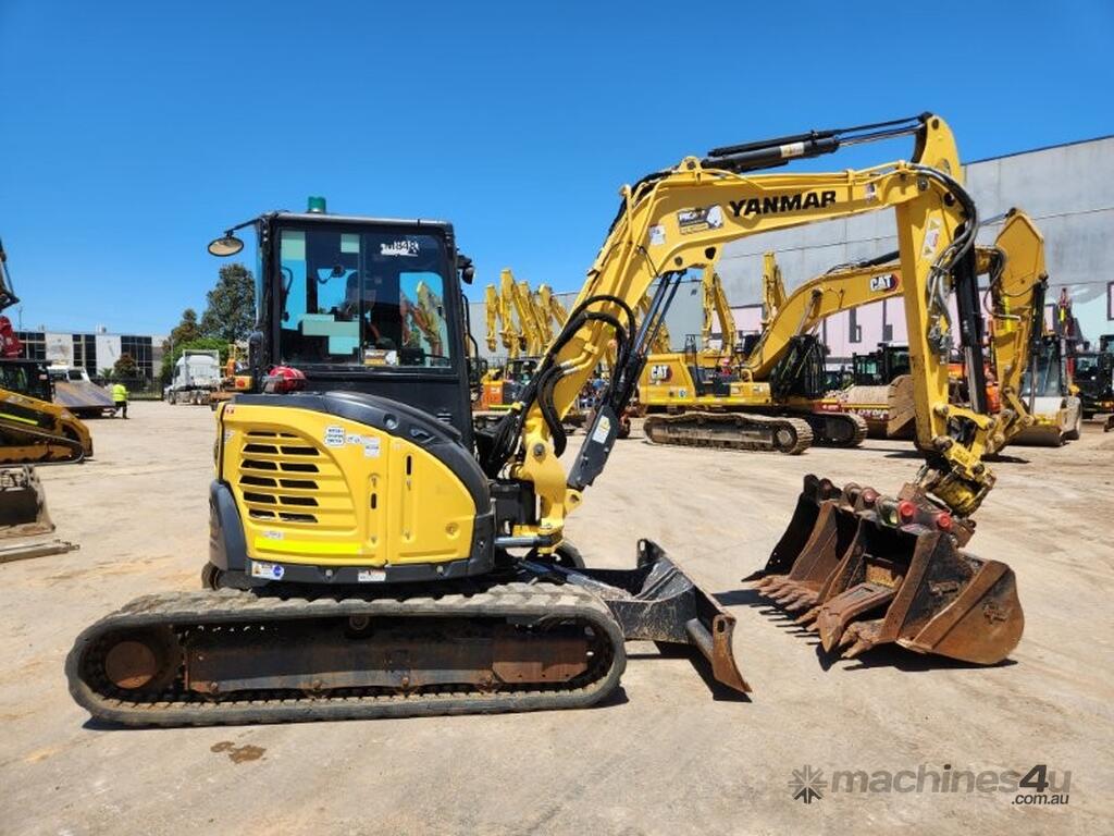 2022 YANMAR VIO55-6 ZERO TAIL 5.6T EXCAVATOR (M843) WITH FULL A/C CABIN, ROPS, LOW 1498 HRS, SAFETY HYDRAULIC HITCH, AUTO IDLE FUNCTION, 2 SPEED, RUBBER TRACKS, DOZER BLADE, PROPORTIONAL CONTROL AUXILIARY HAMMER AND AUGER PIPING, 300, 450 & 600mm DIGGING BUCKETS, MUD BUCKET, UHF RADIO, FULL CIVIL SPEC AND RISK ASSESSMENT. VERY TIGHT CONDITION AND READY FOR WORK, AUSTRALIAN DELIVERED MARCH 2022, 3-MONTH DRIVETRAIN WARRANTY APPLIES.