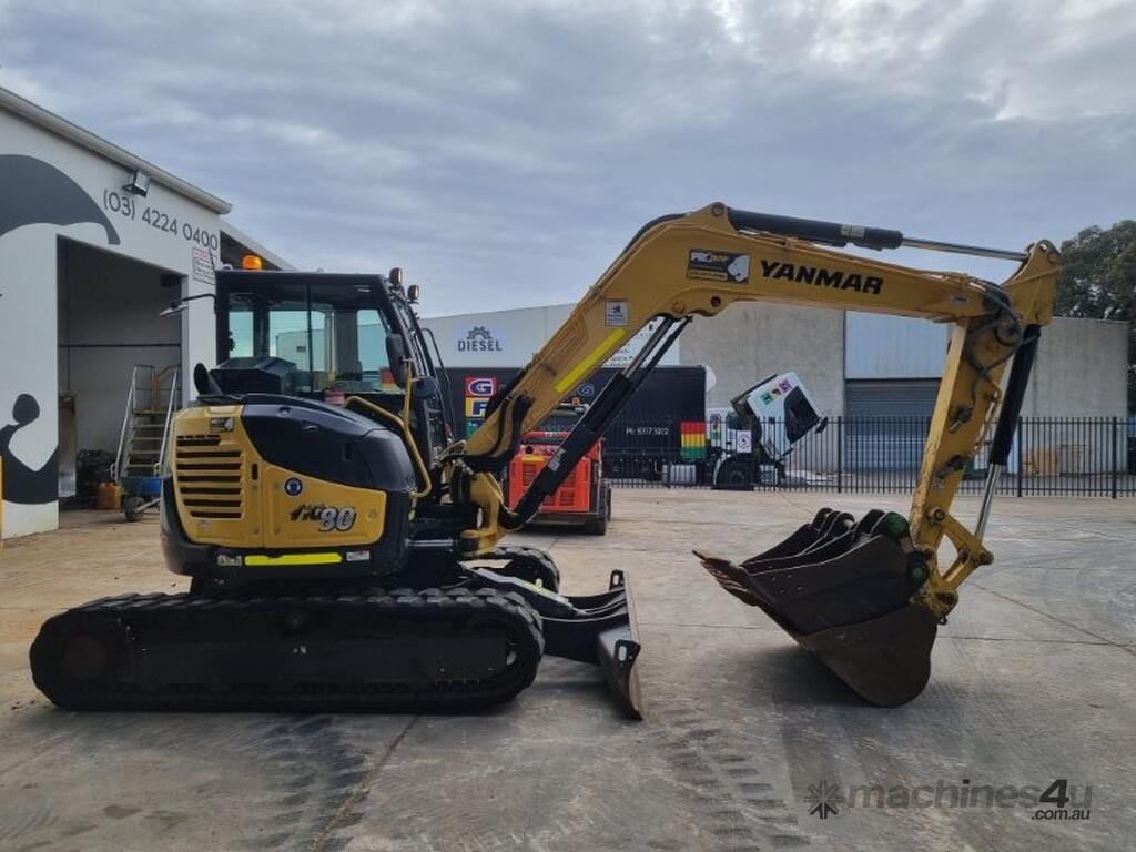 2022 YANMAR VIO80 EXCAVATOR (M859) WITH 1705 HOURS, FULL TIER 1 CIVIL SPEC, ONE OWNER, AUSTRALIAN DELIVERED MAY 2022, 8200KG OPERATING WEIGHT, ZERO TAIL SWING, RUBBER TRACKS, SWIVEL BOOM, FULL A/C CABIN WITH ROPS, DOZER BLADE, DUAL AUXILIARY HYDRAULICS WITH PROPORTIONAL CONTROLS, AUTO IDLE FUNCTION, TRAVEL ALARMS, HYDRAULIC SAFETY QUICK HITCH, 450 & 600mm DIG BUCKETS, AND MUD BUCKET. RISK ASSESSMENT, UHF RADIO, E-STOPS, ISOLATOR, FULL SERVICE HISTORY, READY TO WORK. BALANCE OF FACTORY WARRANTY APPLIES.