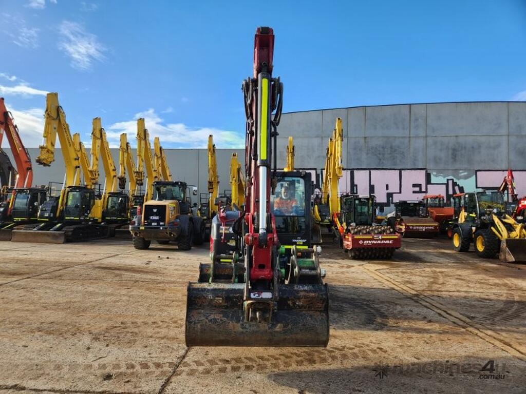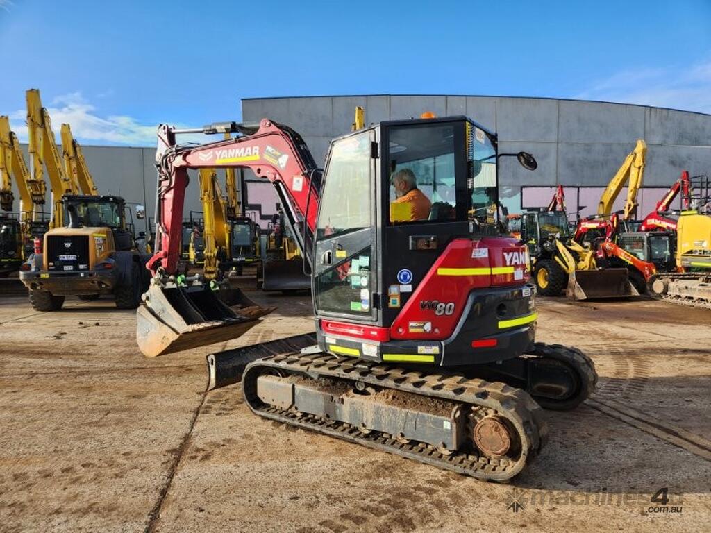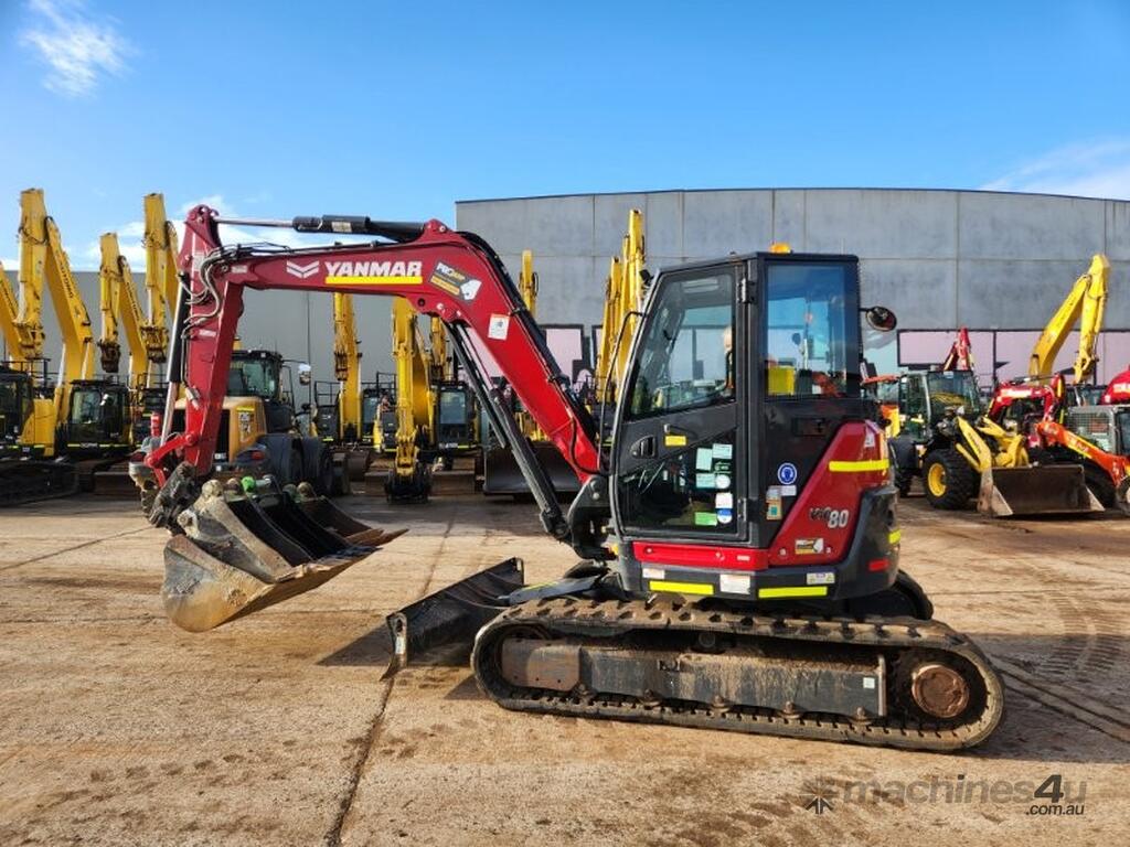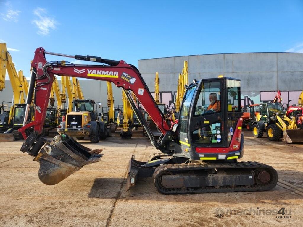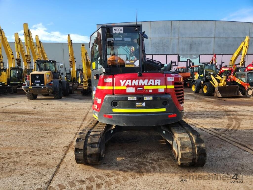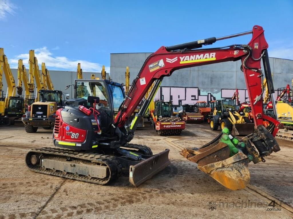 2022 YANMAR VIOT EXCAVATOR WITH SAFETY TILTING HITCH AND 1685 HRS (M904), ONE OWNER, AUSTRALIAN DELIVERED AUGUST 2022, 8200KG OPERATING WEIGHT, ZERO TAIL SWING, RUBBER TRACKS, SWIVEL BOOM, FULL A/C CABIN WITH ROPS, DOZER BLADE, AUXILIARY HYDRAULICS WITH PROPORTIONAL CONTROLS, AUTO IDLE FUNCTION, TRAVEL ALARMS, HYDRAULIC TILTING SAFETY QUICK HITCH, 450 & 600mm DIG BUCKETS, MUD BUCKET. RISK ASSESSMENT, UHF RADIO, E-STOPS, ISOLATOR, FULL SERVICE HISTORY, READY TO WORK. BALANCE OF FACTORY WARRANTY APPLIES TO 29/08/2026.