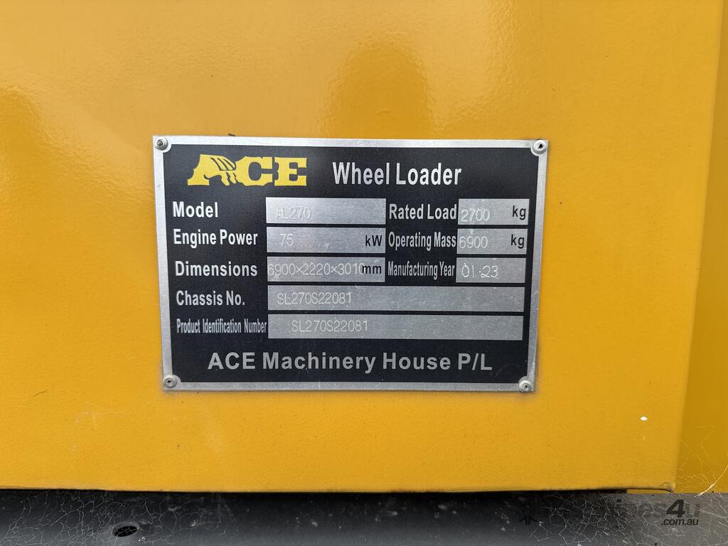 2023 ACE AL270 2,700kg Wheel Loader Powered By a 75kw Diesel Engine With Airconditioned Operators Cabin, 4 in 1 Bucket, GP Bucket and Fork Tynes, 536.2 Hours Showing, Serial No: SL270S22081