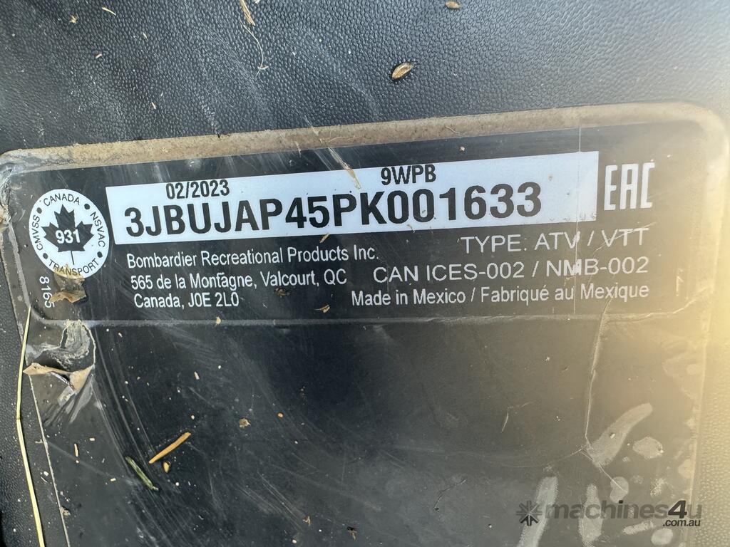 CP: 02/2023,Built: 02/2023,Can-Am,All Terrain Vehicle (4x4),976 CC,2 Cyl,Unleaded,22281 (Kms. Showing on Odometer),2088 (Hrs. Showing on Hour meter),Colour: Yellow,Unregistered,VIN: 3JBUJAP45PK001633,Sold with No Plates