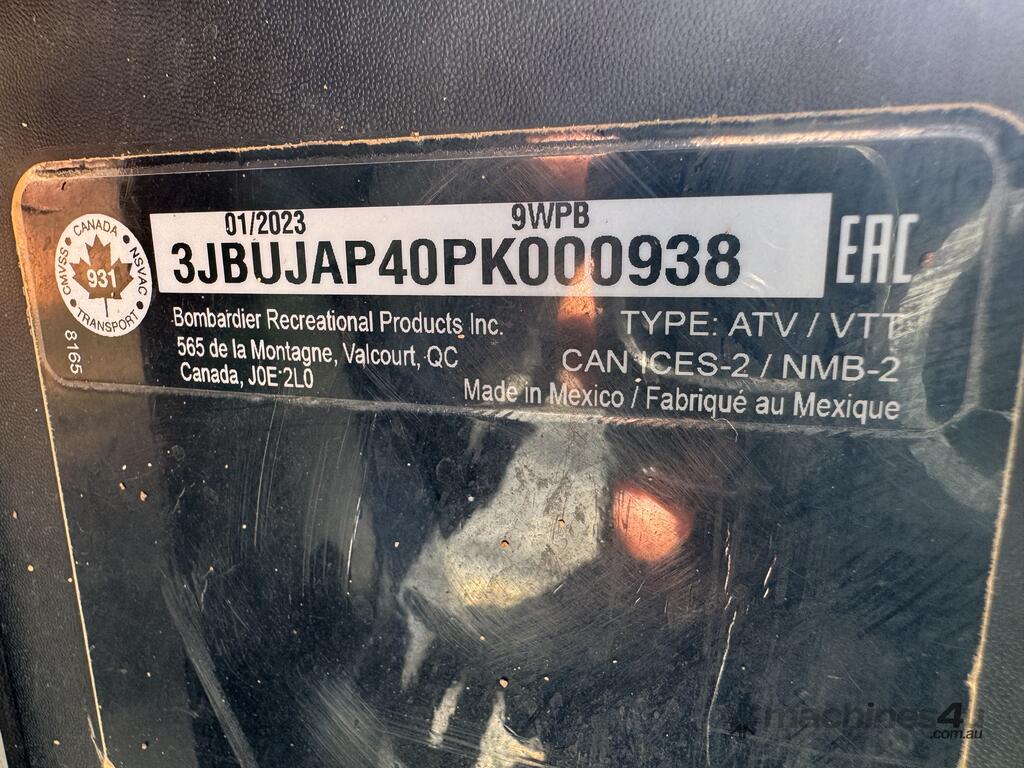 CP: 01/2023,Built: 01/2023,Can-Am,Defender Pro,All Terrain Vehicle (4x4),976 CC,2 Cyl,Unleaded,16304 (Kms. Showing on Odometer),1363 (Hrs. Showing on Hour meter),Colour: Yellow,Unregistered,Serial No: 3JBUJAP40PK000938,Sold with No Plates