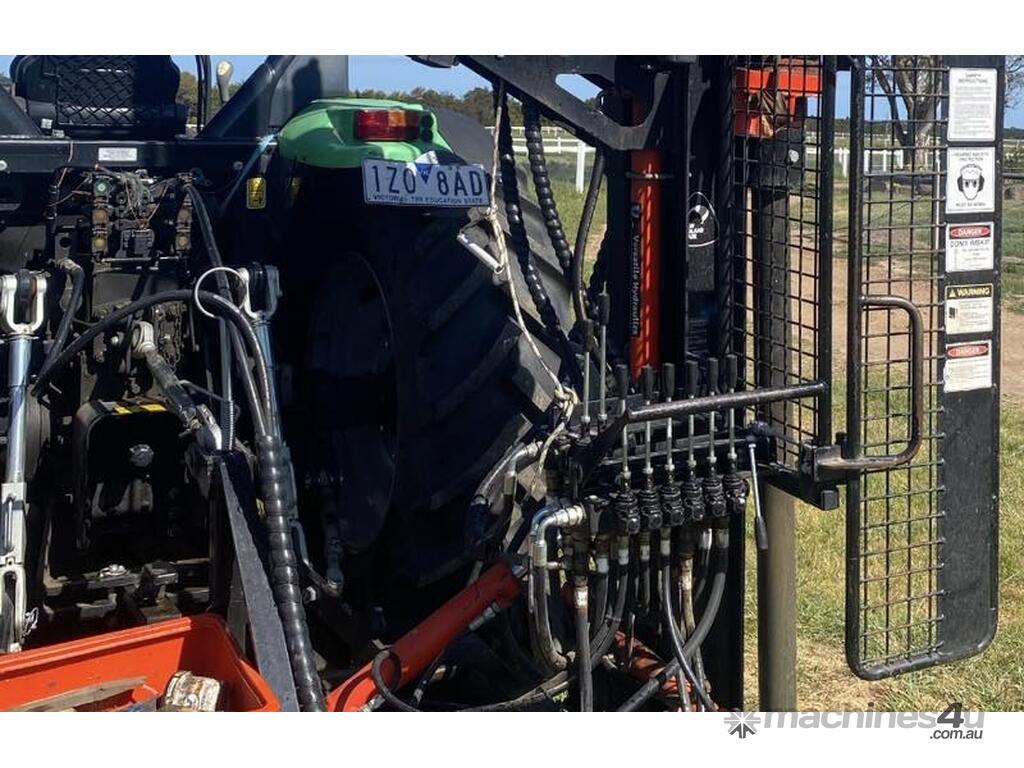 Side shift and mast shift. Auger and rock auger optional add ons available from manufacturer.