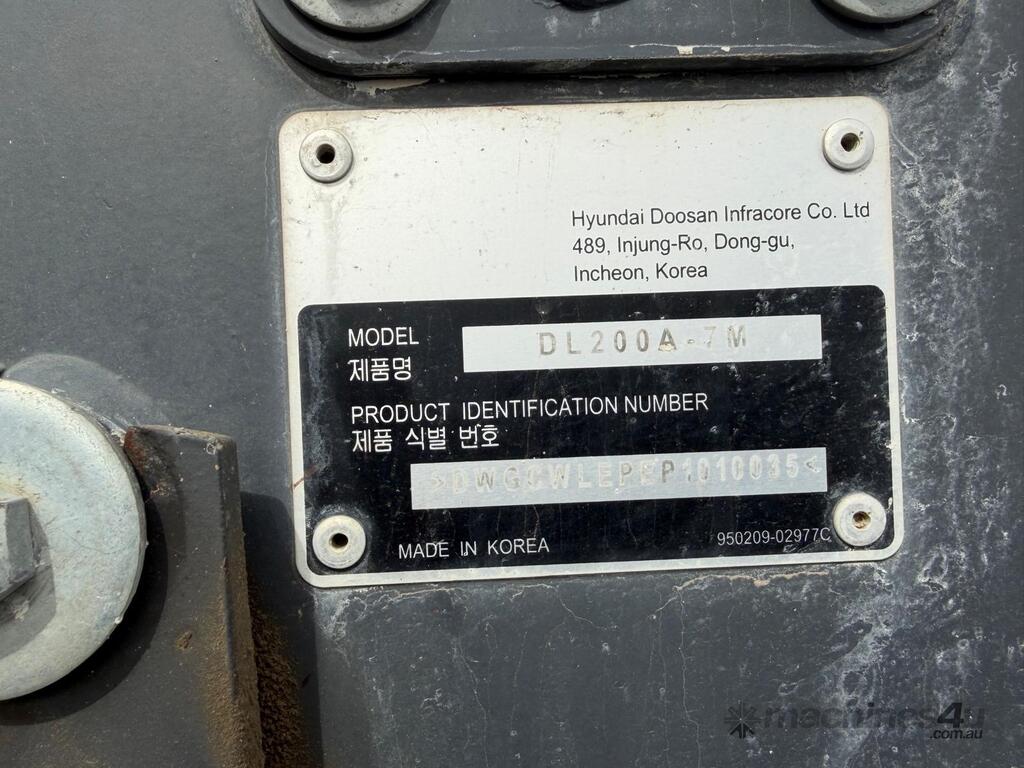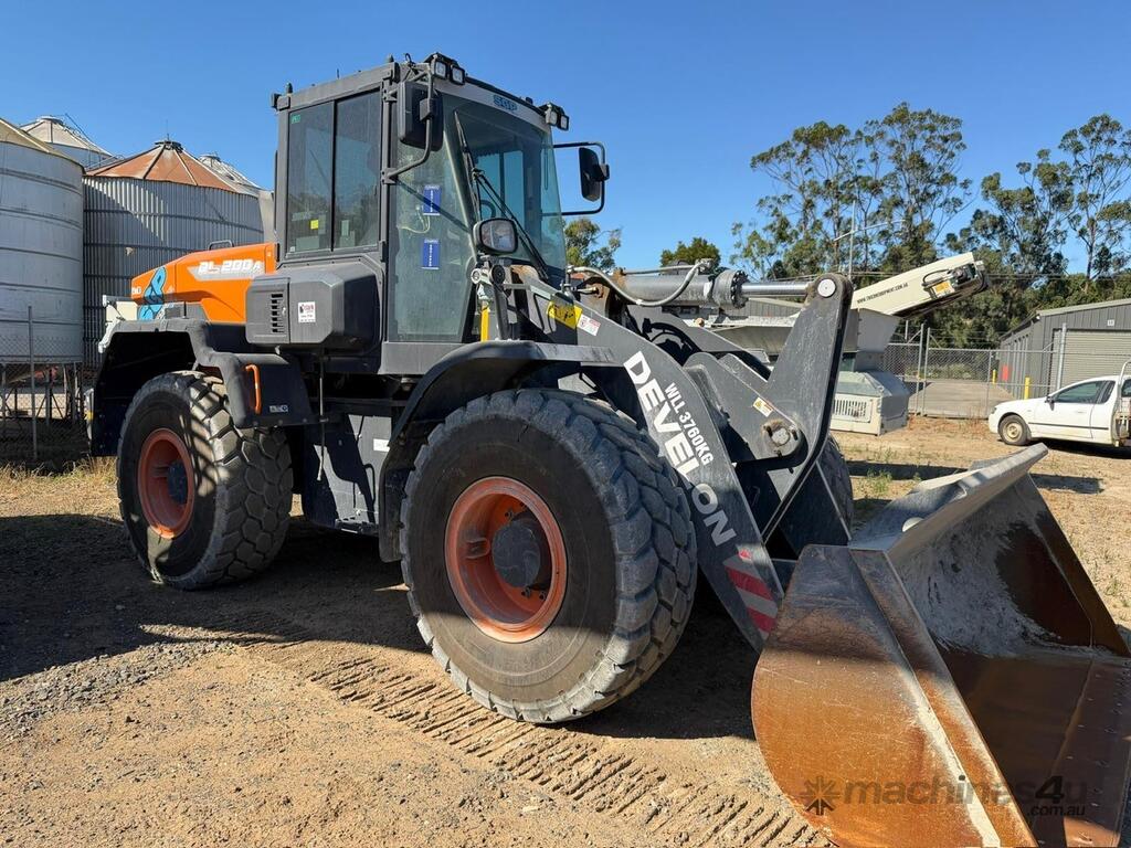 2023 Develon DL200A-7M 11 tonne wheel loader powered by a 162Hp turbo charged diesel engine with airconditioned operators cabin, bucket, touch screen, reverse camera, scales and printer. VIN: DWGCWLEPEP1010035 HOURS : 1,200.2 ( showing ) PLEASE NOTE : Located in Drouin