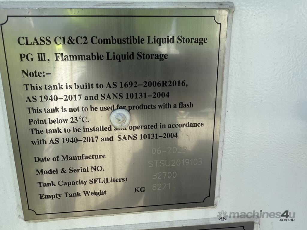 2023 Essco Energy FT30 combustible liquid storage cell, ( diesel only ) 32700lt capacity, FMT SF3-AC smart fill fuel controller, FES high level alarm, access steps, serial STSU2019103.