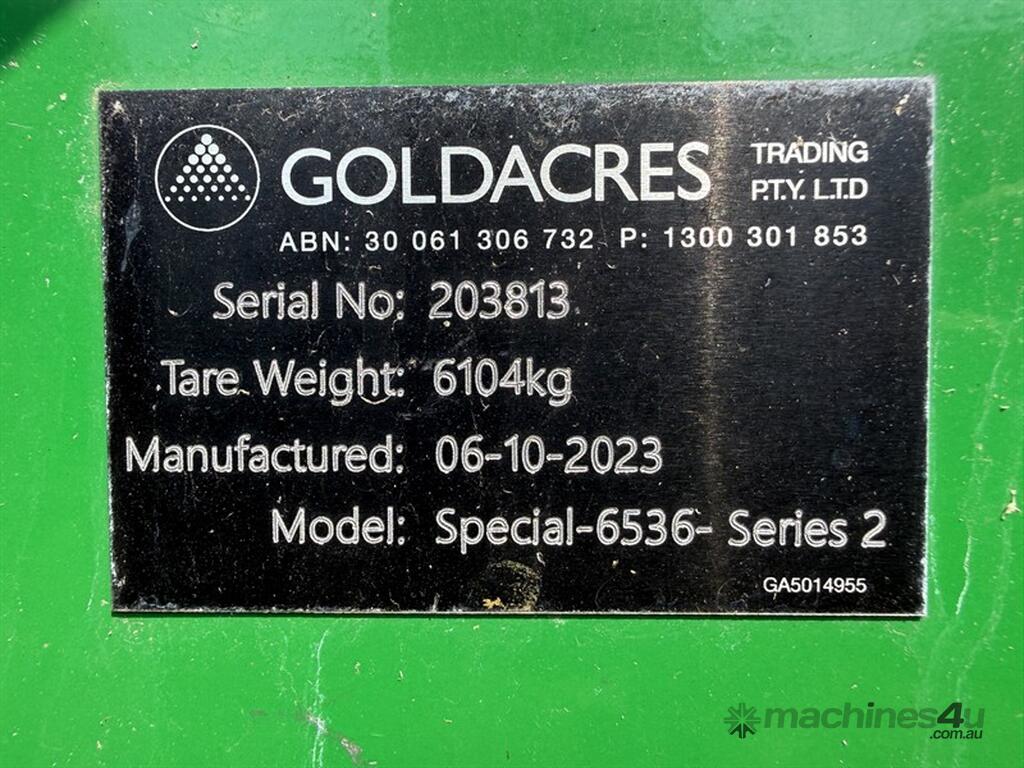 2023 GOLDACRES SPECIAL-6536 SERIES 2 TRAILING SPRAYER S/N 203813. LOCATION: BILOELA, QLD 4715. INSPECTIONS & COLLECTIONS: BY APPOINTMENT ONLY. ENQUIRIES: CAMERON BENSLEY ON OR CAMERONEMERALDAUCTIONCENTRE