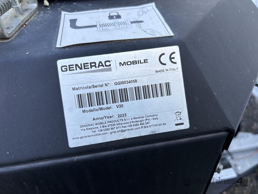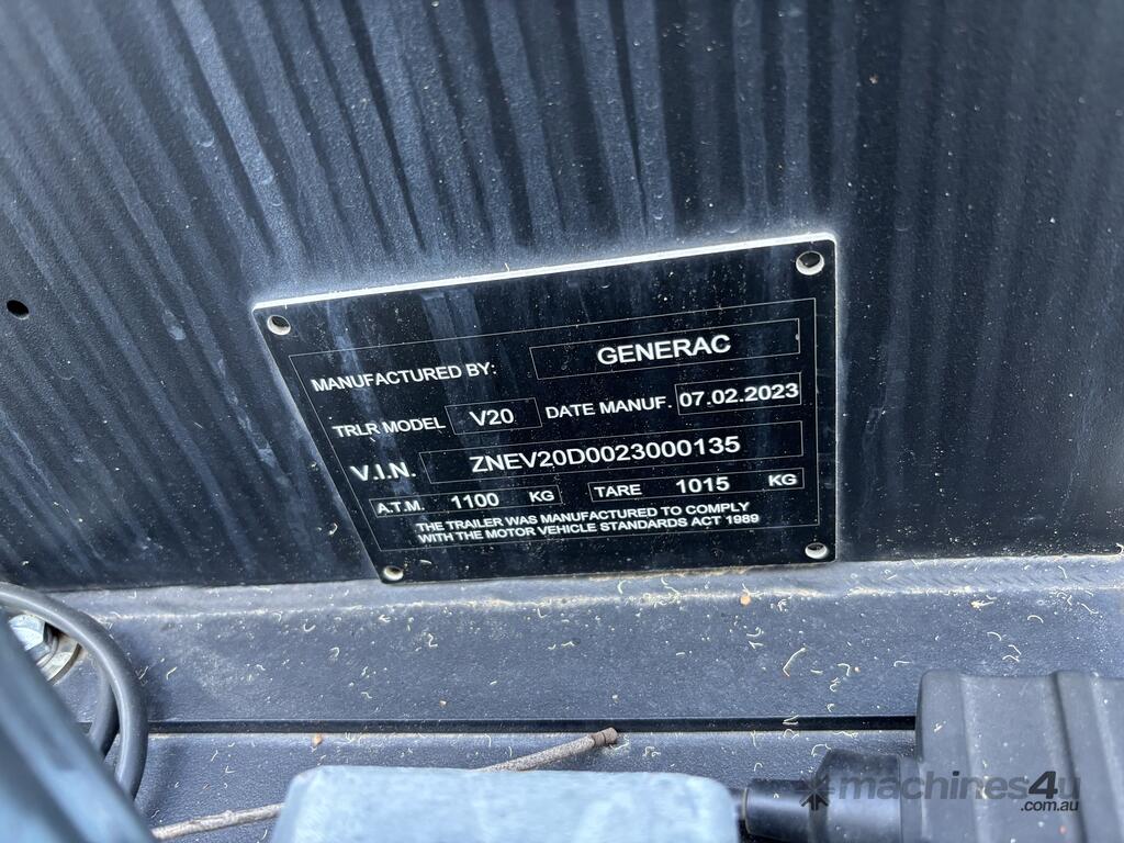 CP: 02/2023,Generac,V20,Lighting Tower (Trailer Mounted),Hubometer not visible,Colour: White,Unregistered,VIN: ZNEV20D,Serial No: GGI0034058,Sold with No Plates