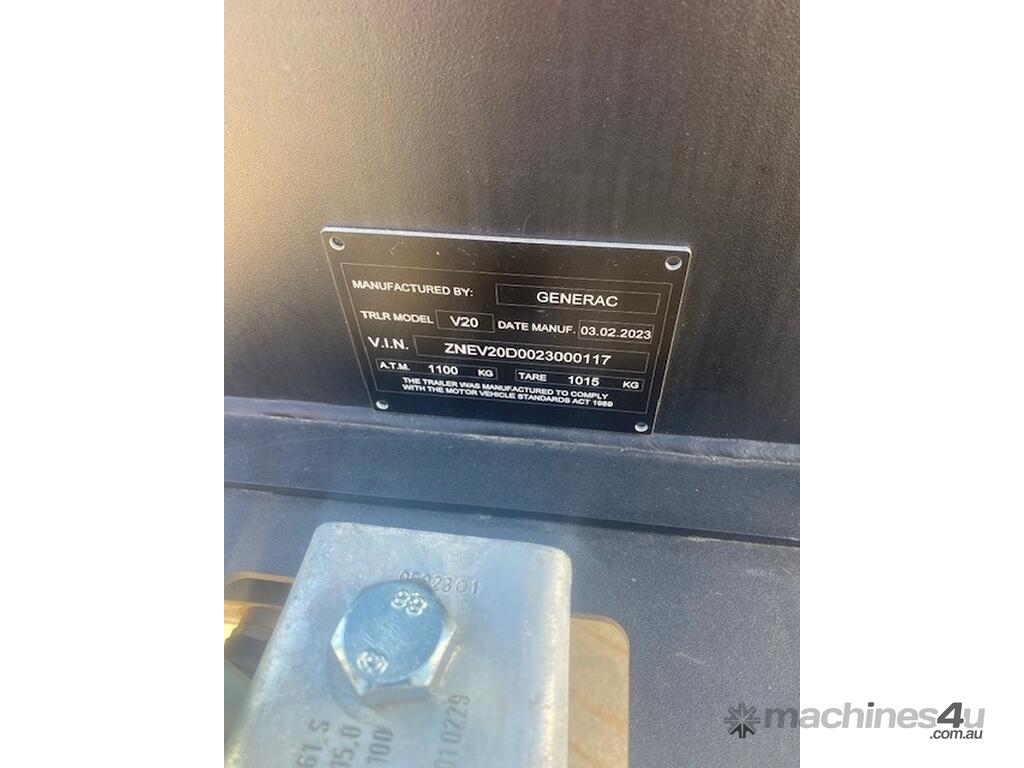CP: 01/2023,Generac,V20,Lighting Tower (Trailer Mounted),0 (undefined),Colour: White,Unregistered,VIN: ZNEV20D,Serial No: GGI0034028,Sold with No Plates