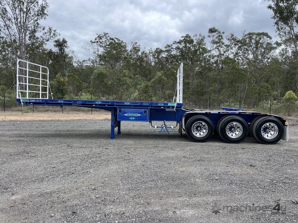 For hire 10 Pallet flat top A-trailer with pins available for short or long term hire unlimited kilometres $1000 plus gst $100 total $1100 per week subject to terms and conditions