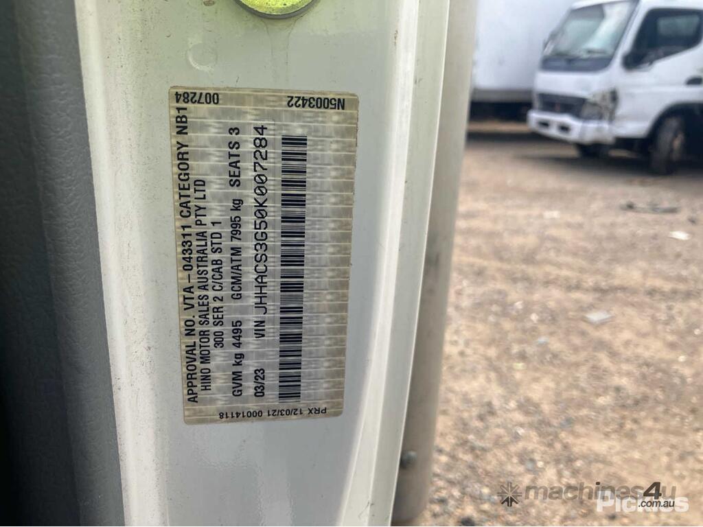 CP: 03/2023,Hino,300 series,Tipper,Manual,Spring,4 Cyl,Diesel,Odometer not visible,Hourmeter not visible,Colour: White,Rego. No: NP(271HK7), Unregistered QLD,VIN: JHHACS3G50K007284,Length: 5500 m,GVM: 4495,GCM: 7995,Sold with No Plates,WOVR Status: WOVR N/A,Incident Type: Impact