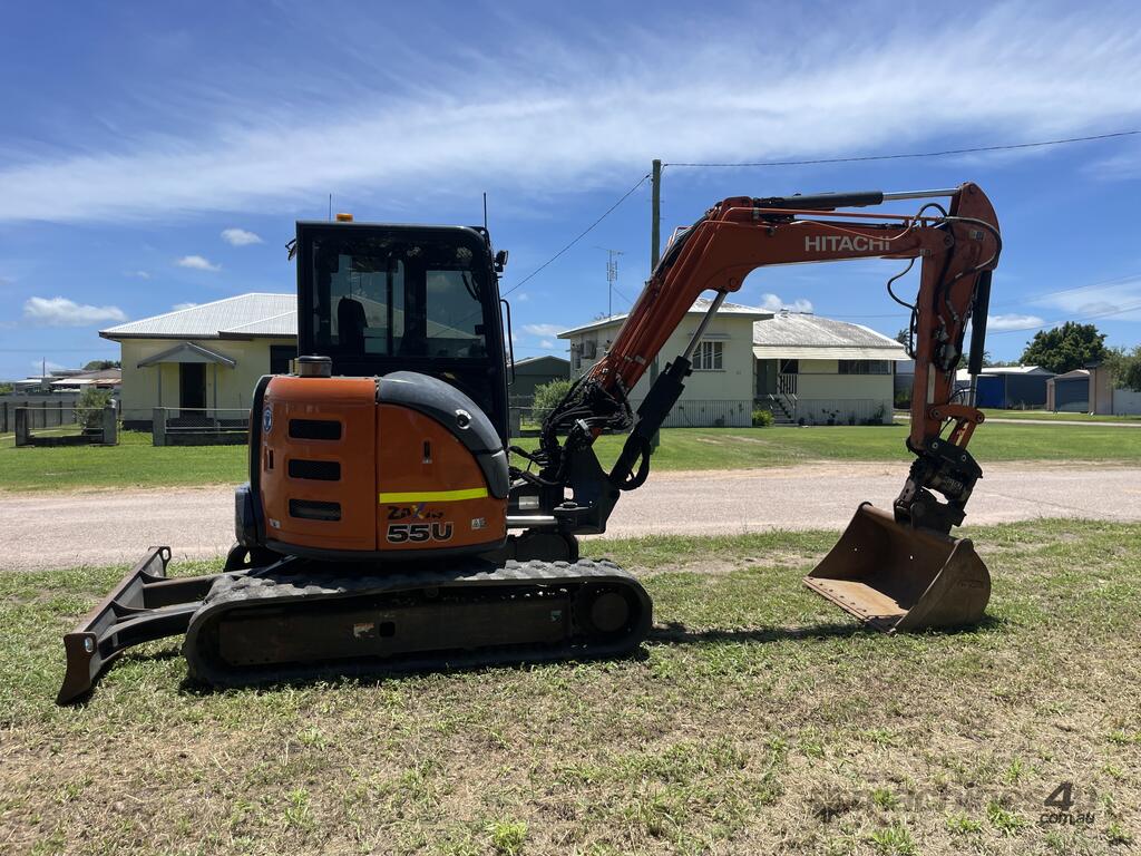 CP: CIRCA 2023,Hitachi,ZX55U-5A,Excavator (Rubber Tracked),Engine #: 196701,4 Cyl,Diesel,Odometer not visible,1023 (Hrs. Showing on Hour meter),Colour: Orange,Unregistered,Serial No: HCMAEB90V00059370,Sold with No Plates