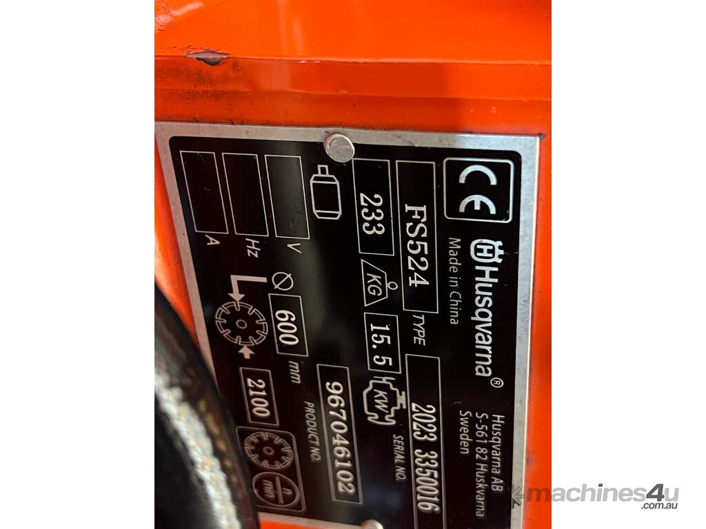 For sale is a 2023 Husqvarna FS 524 Self-Propelled Floor Saw in near-new condition.