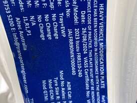 CP: CIRCA 2023,Isuzu,FRR 110-240,EWP,Automatic,Diesel,Odometer not visible,Hourmeter not visible,Colour: White,Rego. No: NP(XW83RP), Unregistered VIC,VIN: JALFRR90MN7000440,Sold with No Plates,WOVR Status: WOVR N/A,Incident Type: Impact
