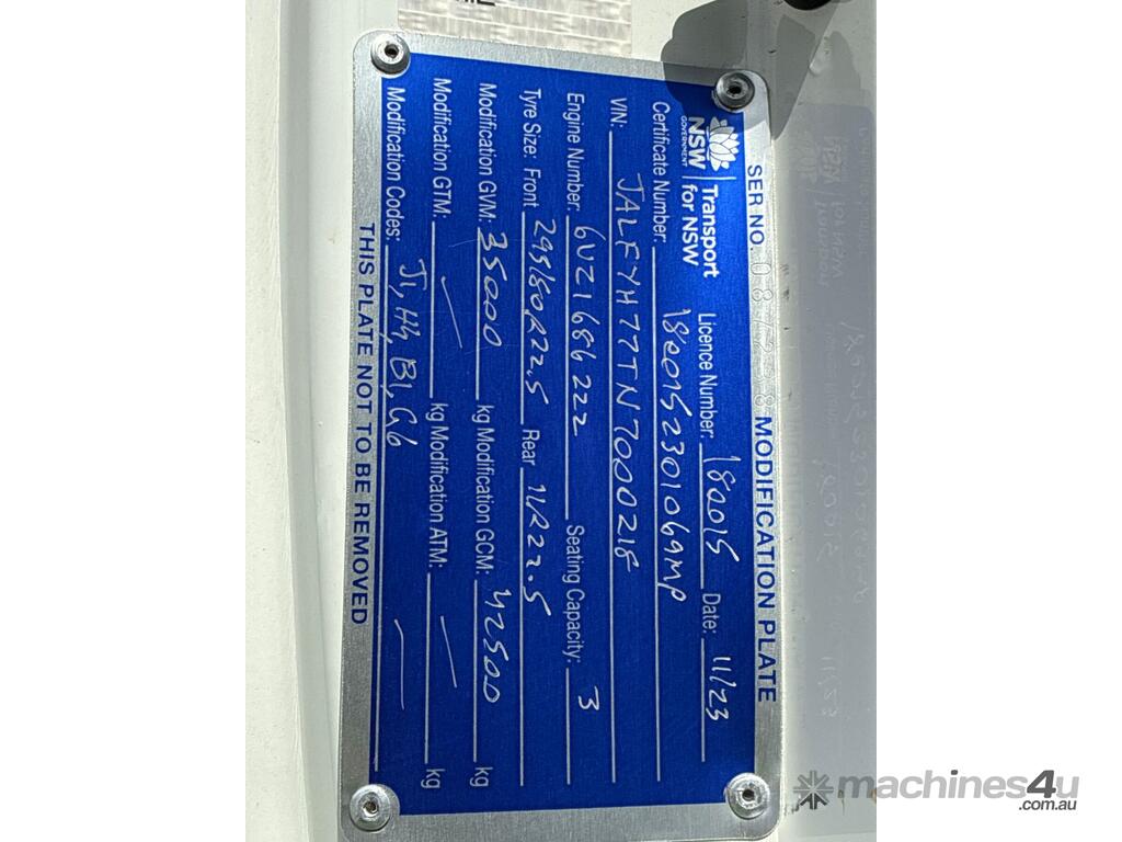 CP: 02/2023,Isuzu,FYJ 300-350,Tipper,Automatic,Airbag,Engine #: 6UZ168222,6 Cyl,Diesel Turbo,26312 (Kms. Showing on Odometer),858 (Hrs. Showing on Hour meter),Colour: White,Rego. No: NP(XP77BH), Unregistered NSW,VIN: JALFYH77TN7000218,Key No: 227,Length: 7 m,GVM: 33000,GCM: 42500,Sold with No Plates,Key No: 227