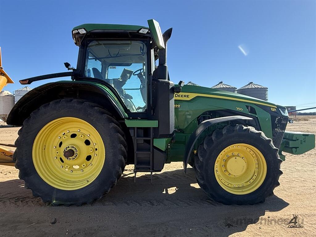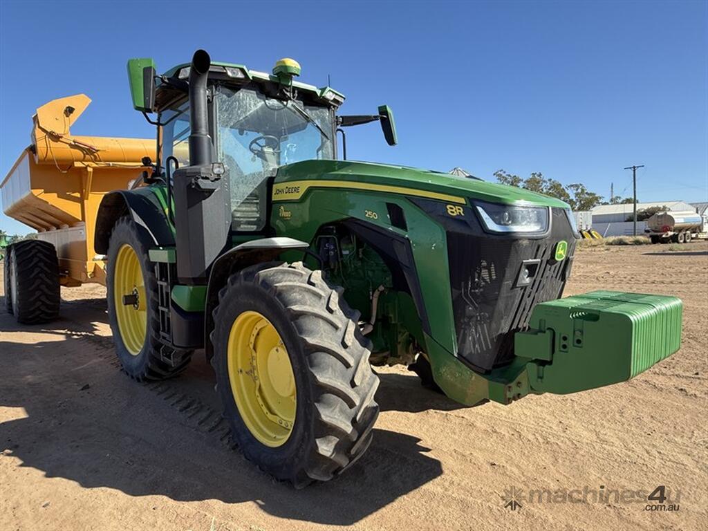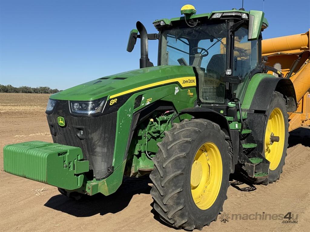 2023 JOHN DEERE 8R250. Serial no. 1RW8250DKNA200865. Hours 4278. Engine remapped to 340hp. Powershift transmission. PTO. 4 x hydraulic remotes. 3PL. Rear tyres 480/80R50. Front tyres 480/70R34. One owner. Front weight package. Rear weight package. Greenstar Gen 4 display and 6000 reciever, both with SF3 activation. Located Moree, NSW