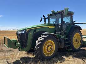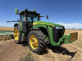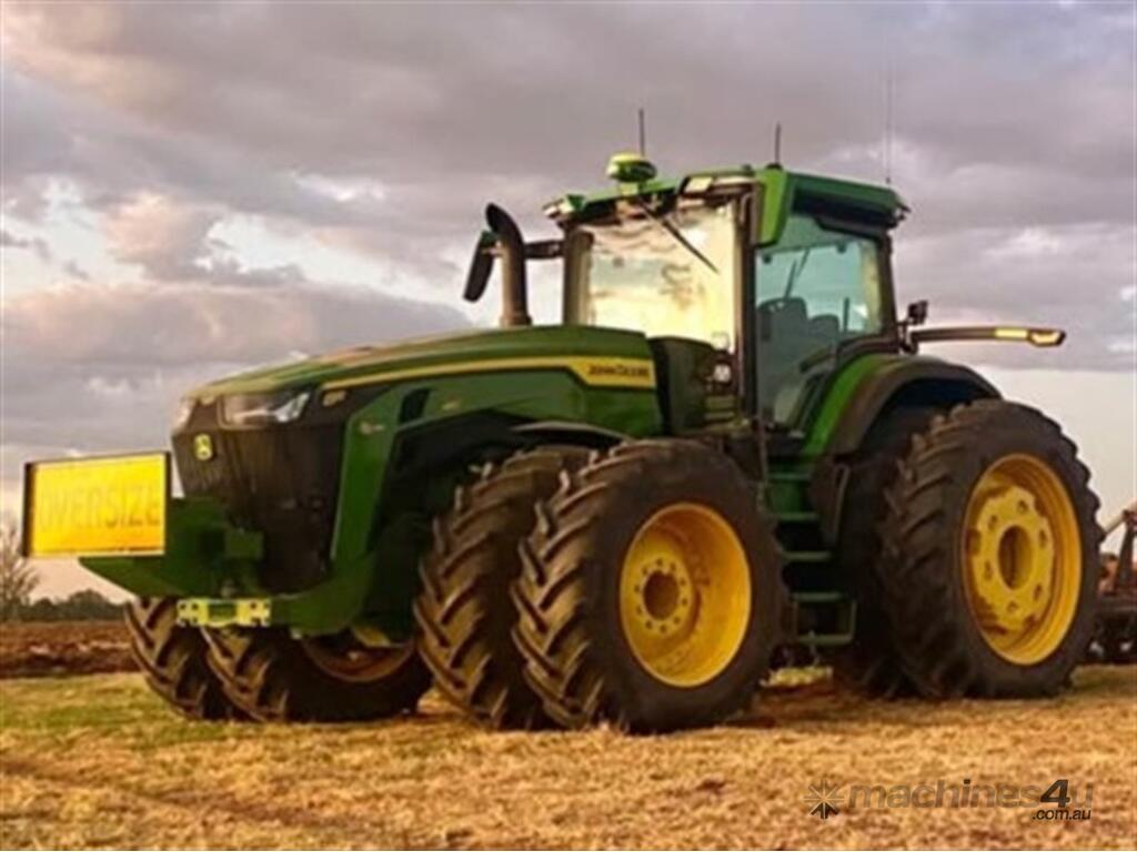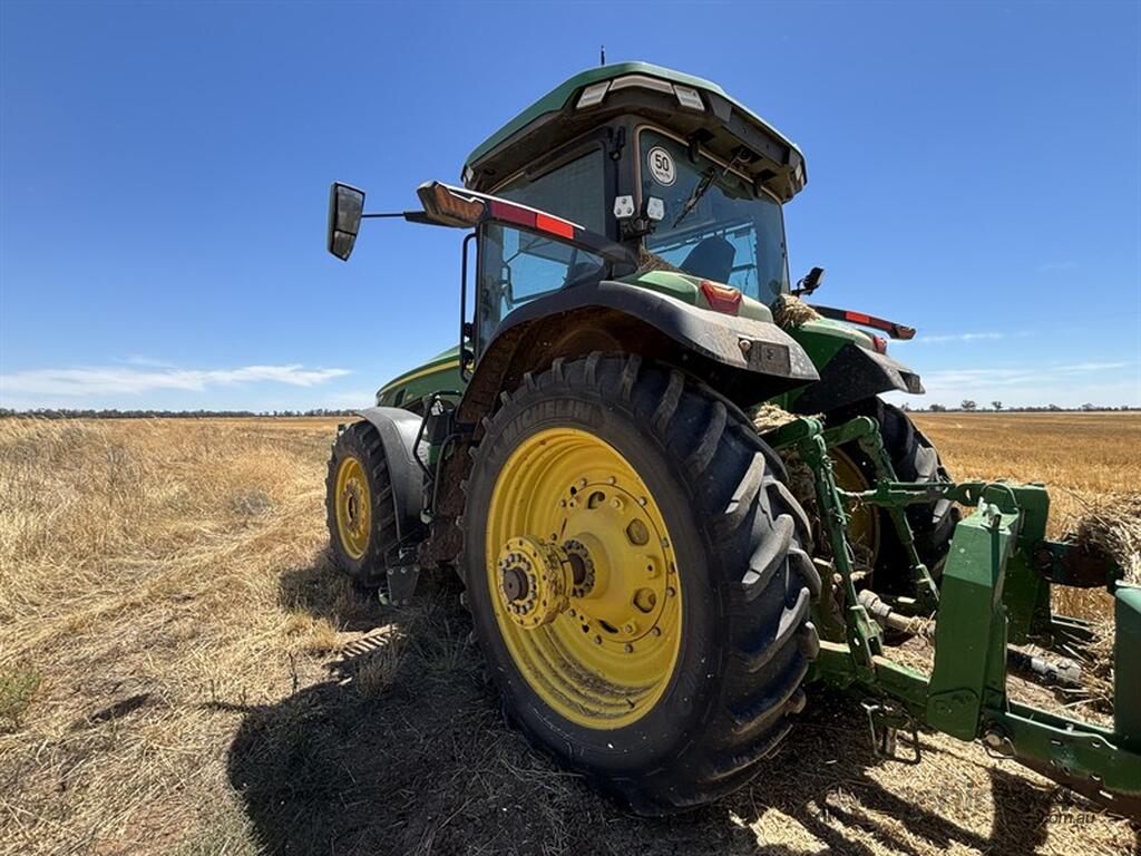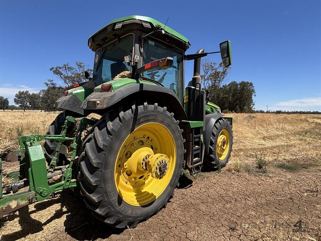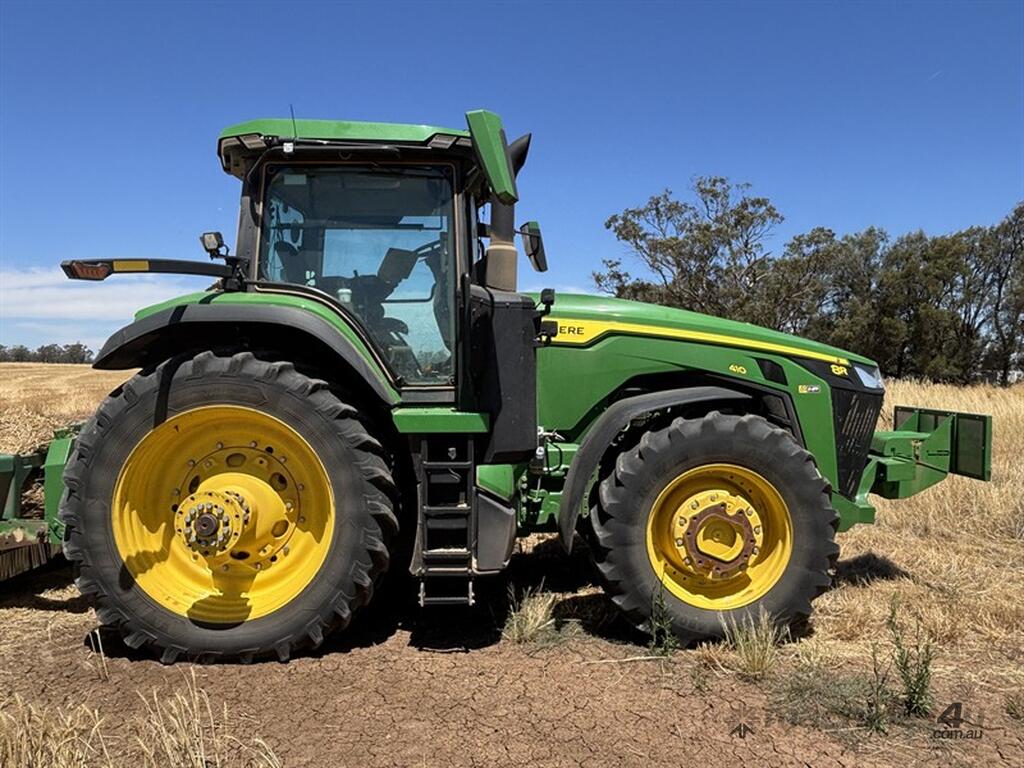 USED 2023 JOHN DEERE 8R410, S/N: 1RW8410DLND221353, approx 1200 hrs (machine still in use), delivered new in April 2025, includes front and rear duals, front tyres 480/70R34, rear tyres 480/80R50, front weight pack, rear wheel weights on inner and outer rims, CVT transmission, 3PL, ILS front suspension, ultimate cab package with leather seats, premium lighting package, Greenstar guidance, still under warranty and service packages, located Trangie