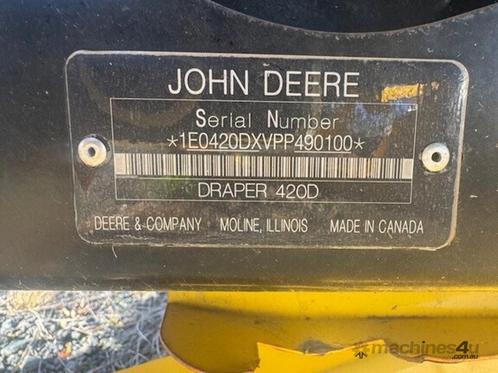 2023 John Deere 420D windrower cutting platform, dual knife drive, 6 to 9 batt reel conversion kit, steel end finger kit for reel, new old stock unit, unassembled, we can organise freight to the mainland, $112,500+GST