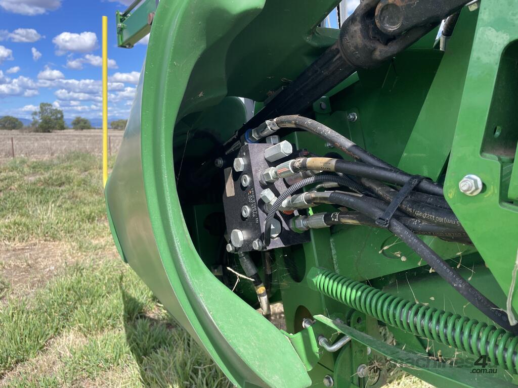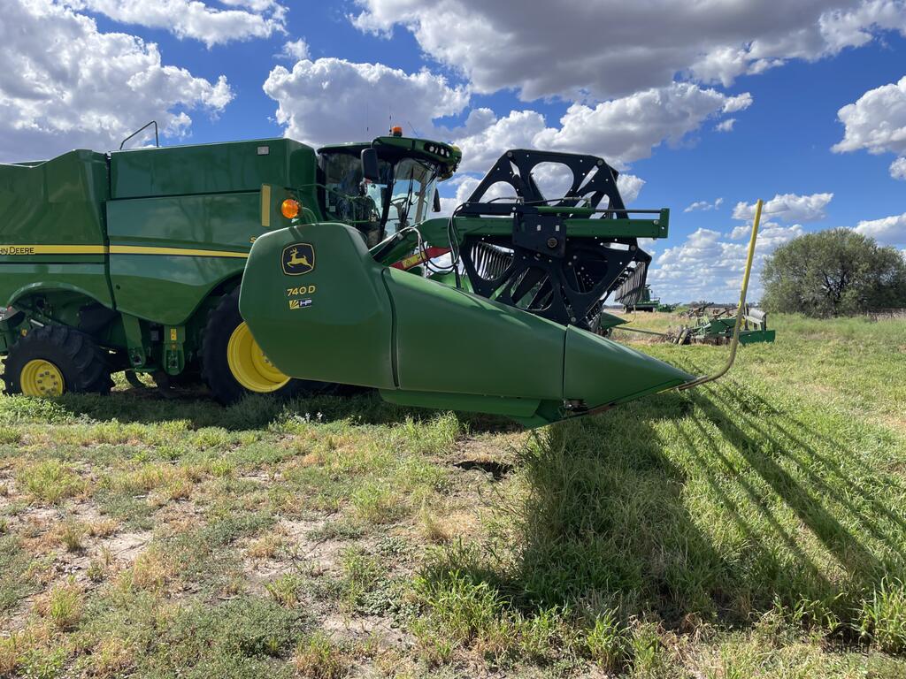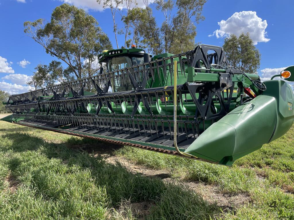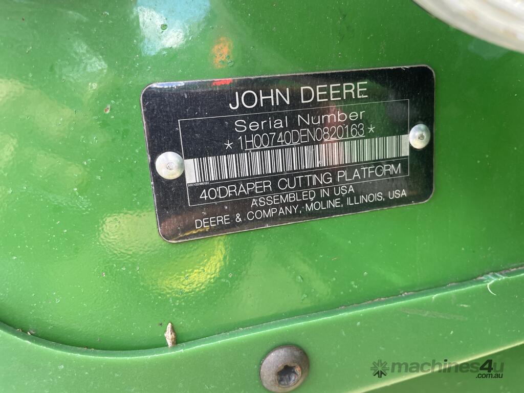 2023 John Deere 740D draper front with a 40-foot working width. Fitted with a gauge wheel tyre system for improved ground following. Comes with a Leith Engineering trailer for transport. Presents in like new, good working order.