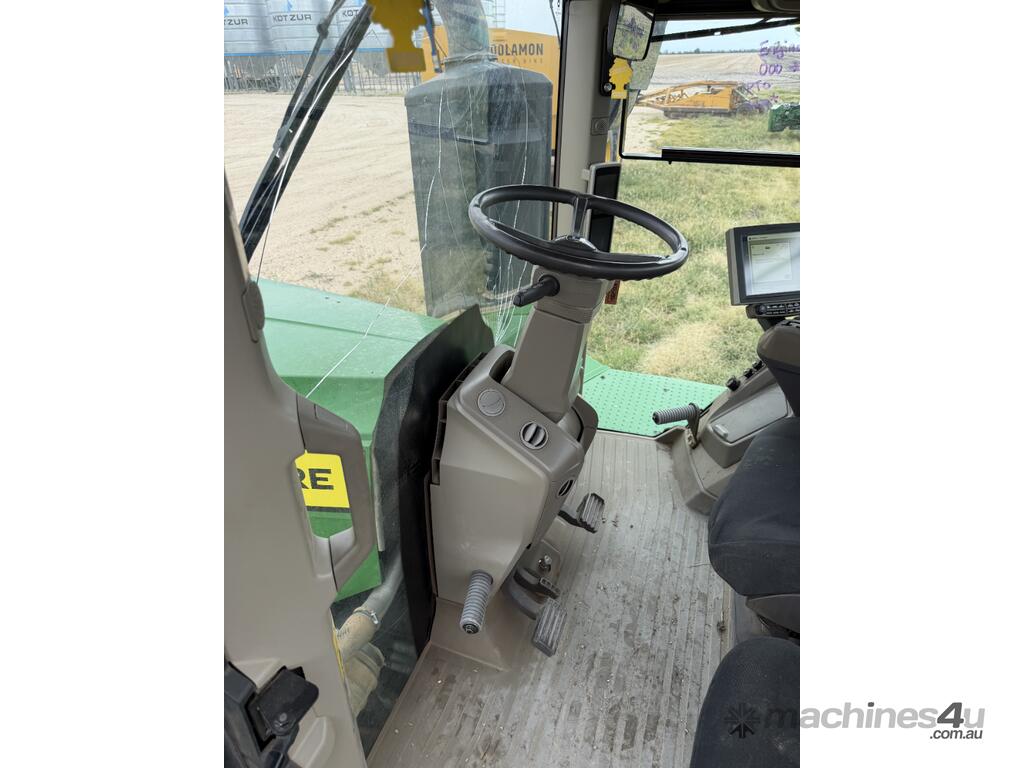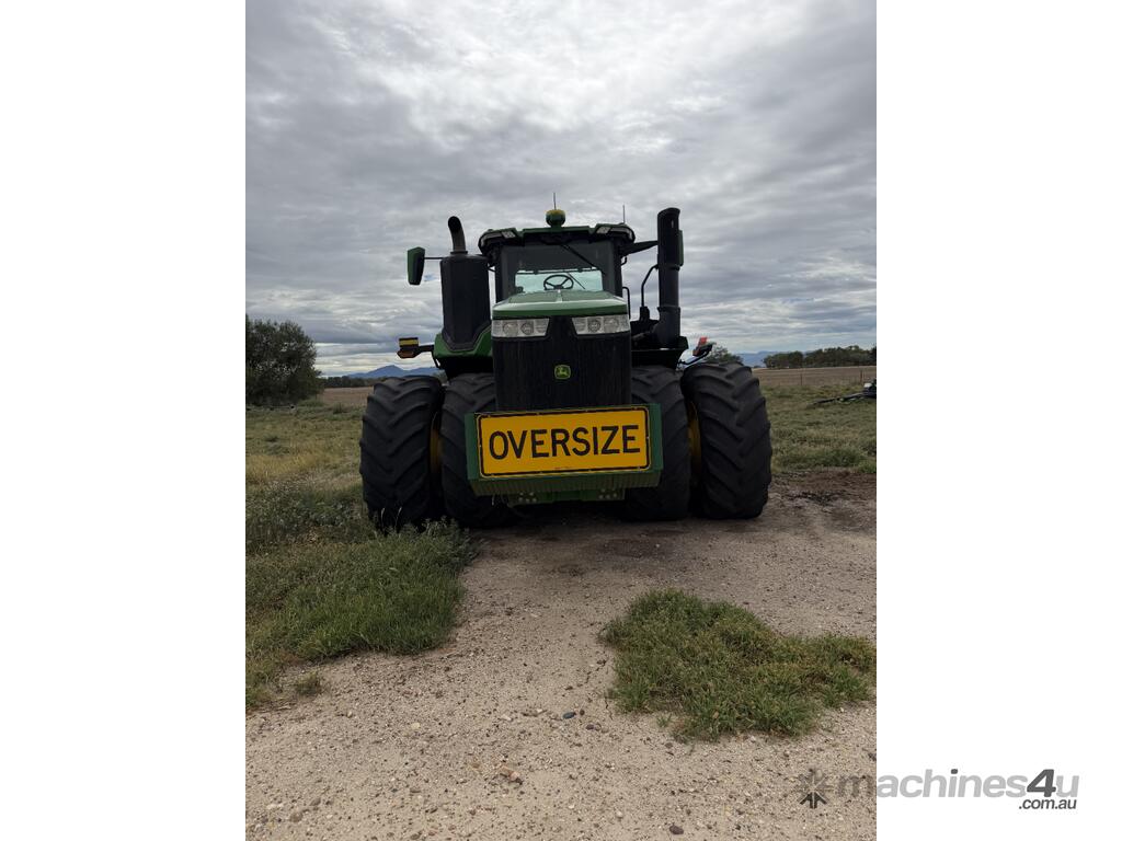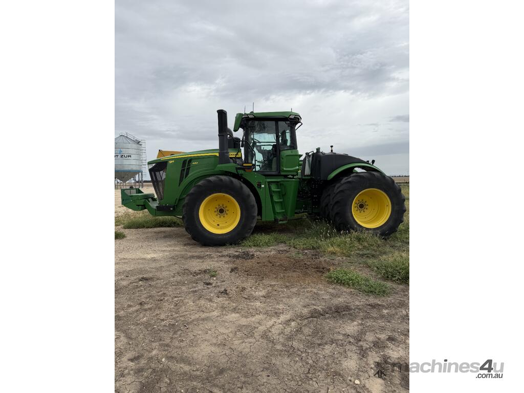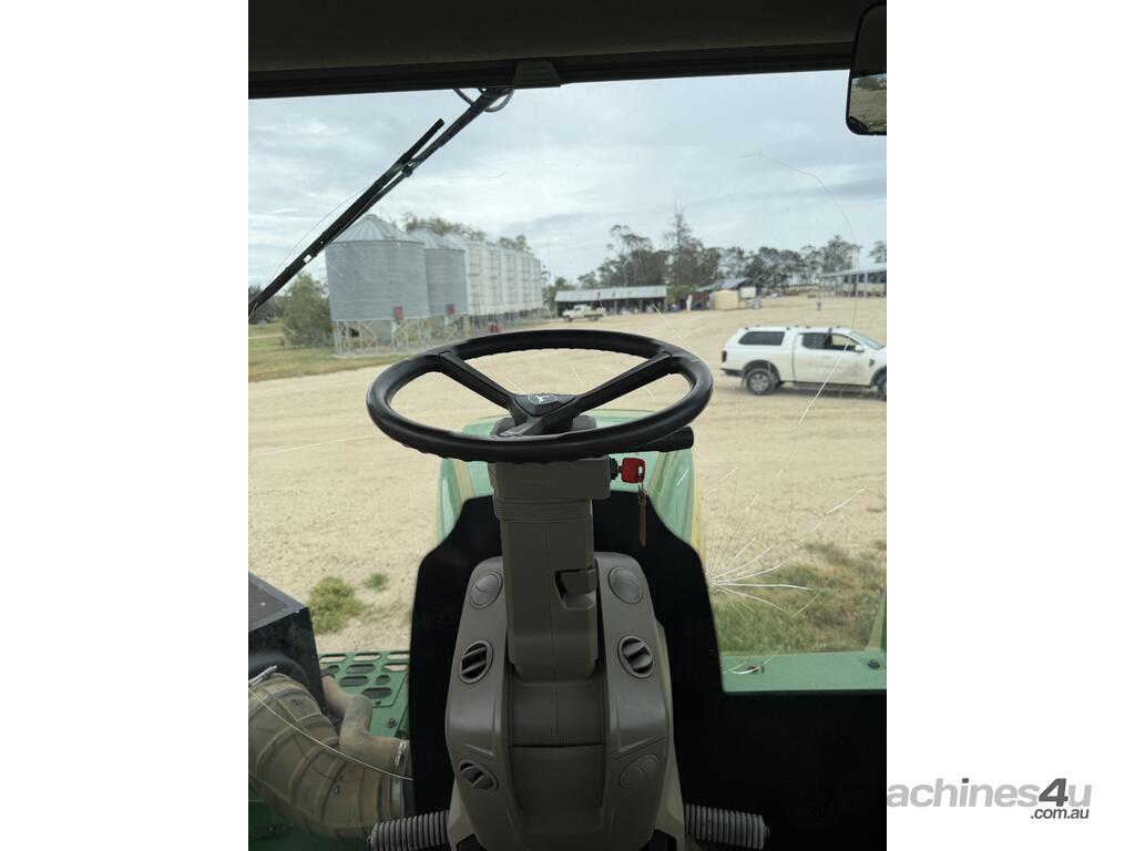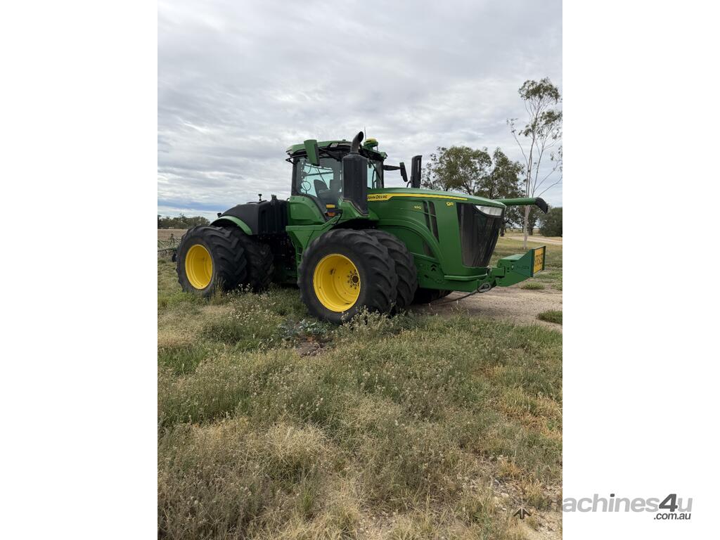 2023 model John Deere 9R 490 articulated tractor showing 4,985 hours. Fitted with a full front weight package and rear wheel weights. Also equipped with a Collier & Miller hydraulic cushion hitch drawbar, 540/1000 PTO and UHF in the cab. Tyres are approximately 35% all round. The tractor has approximately 20 hours of remaining factory powertrain warranty. Presents as a well set up tractor.