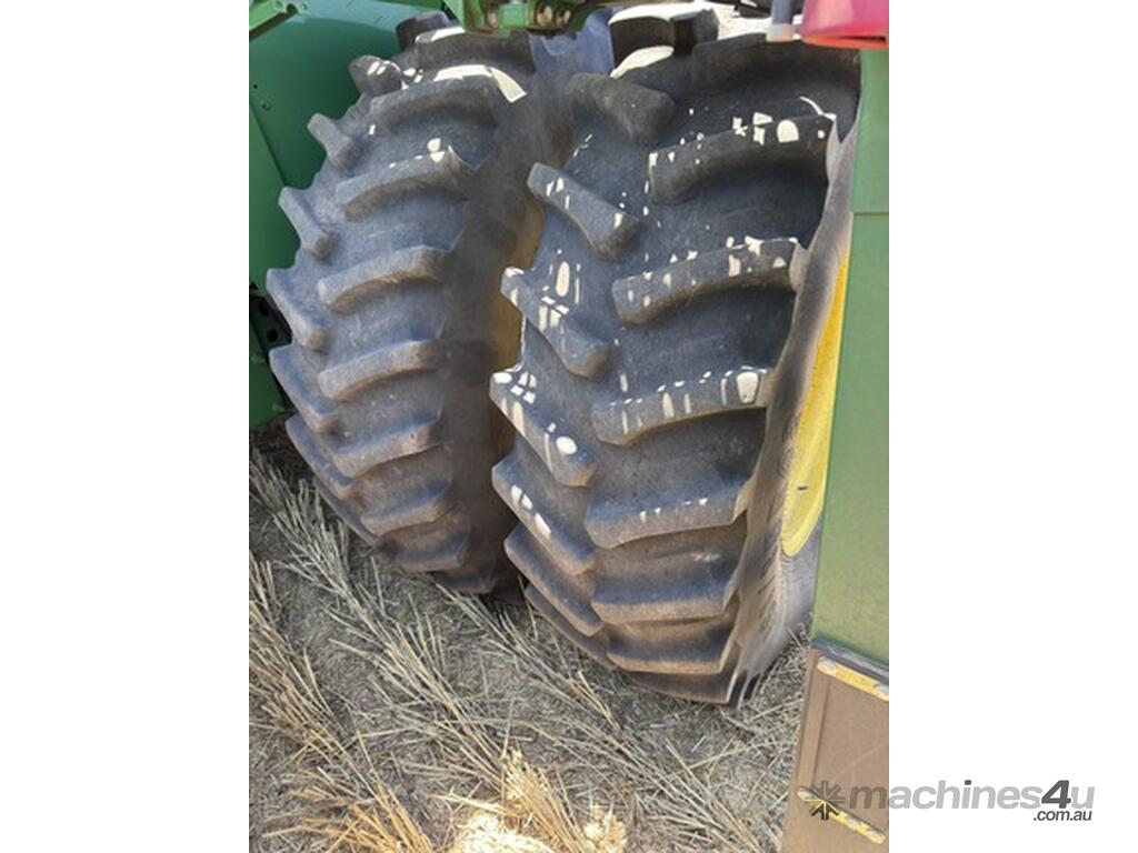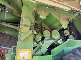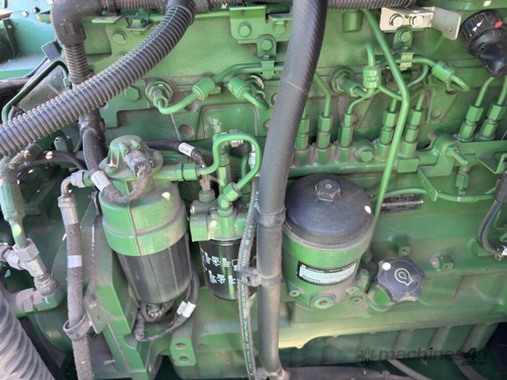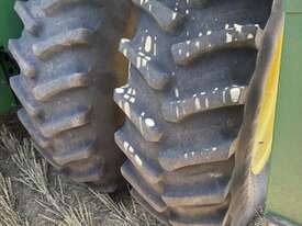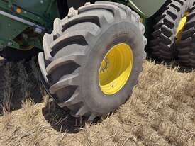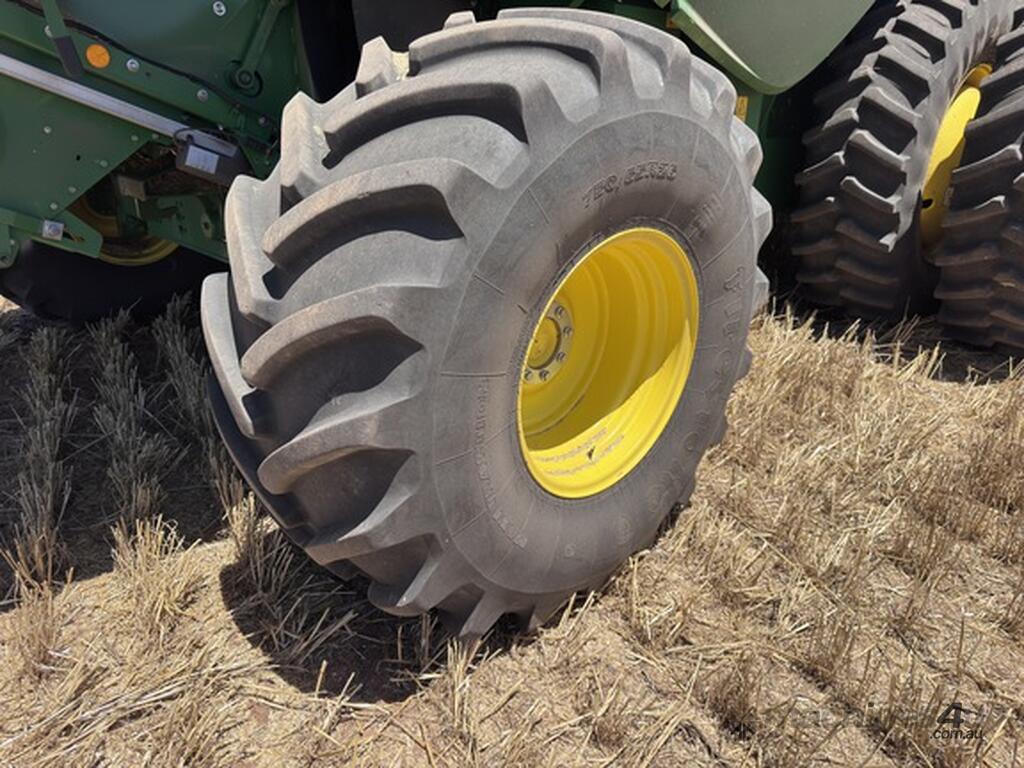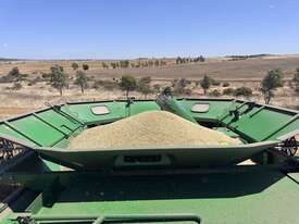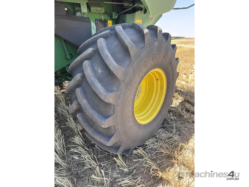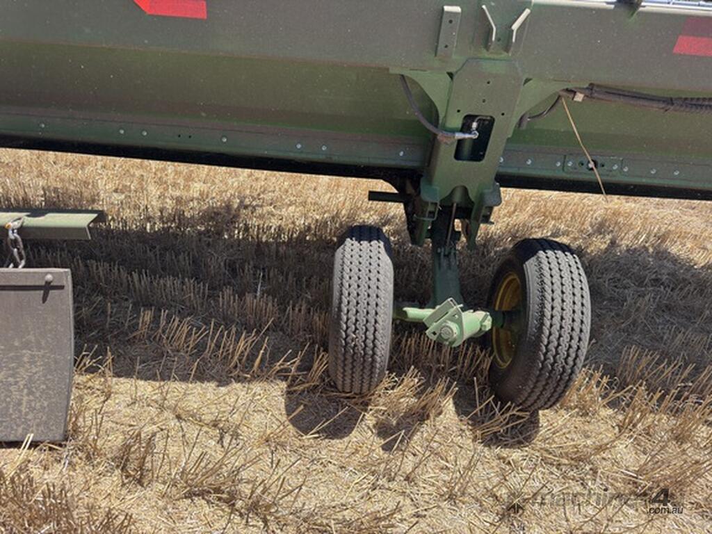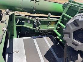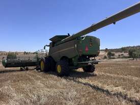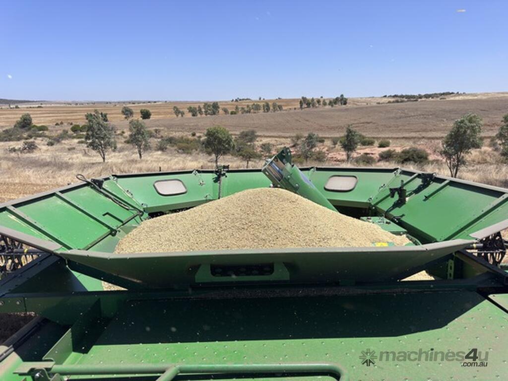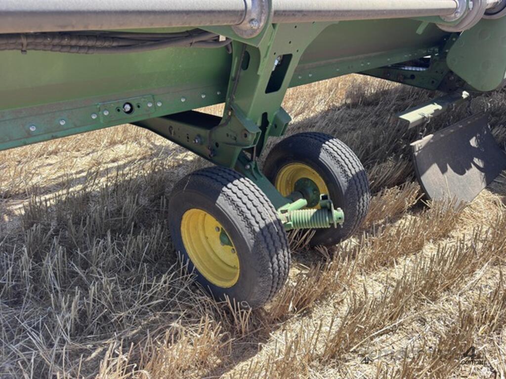 John Deere S770 duals chopper prodrive etc with John Deere 740D platform with top auger on trailer