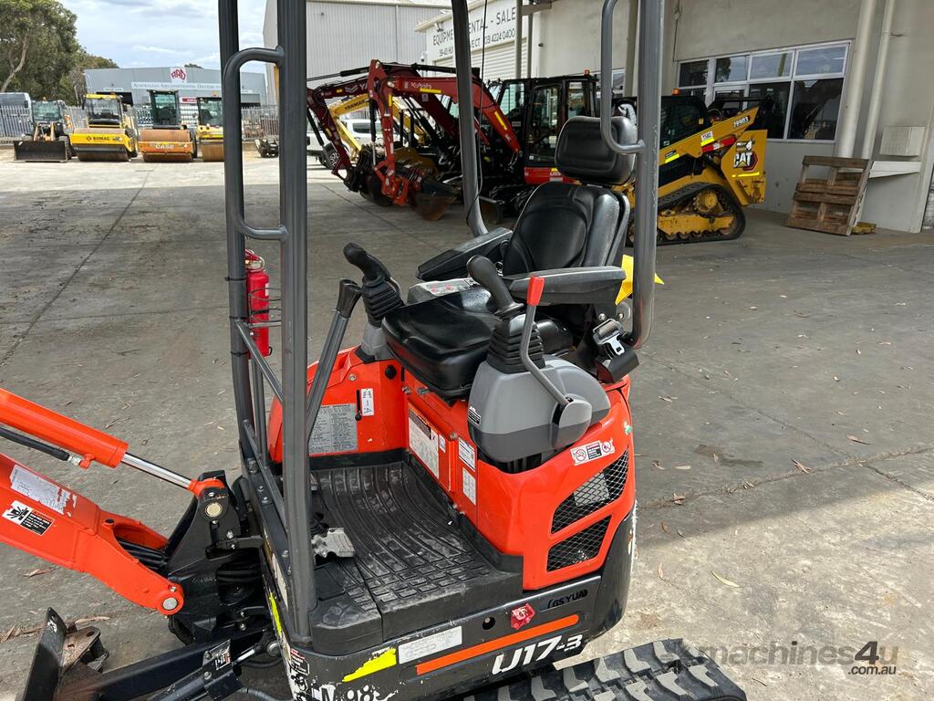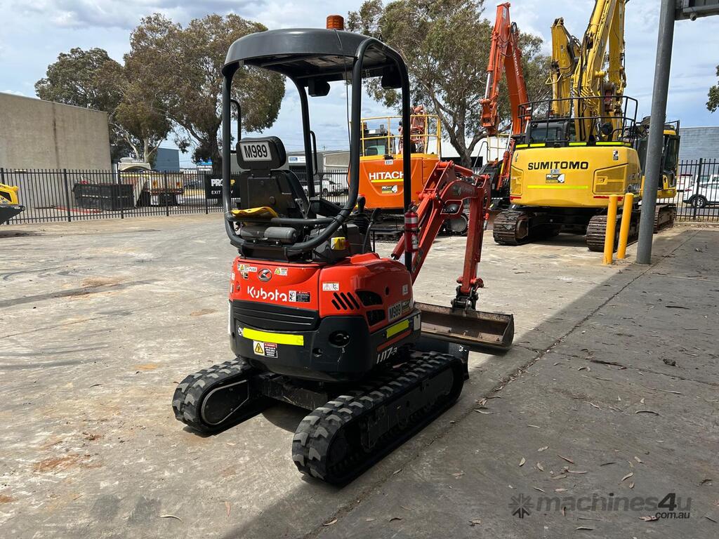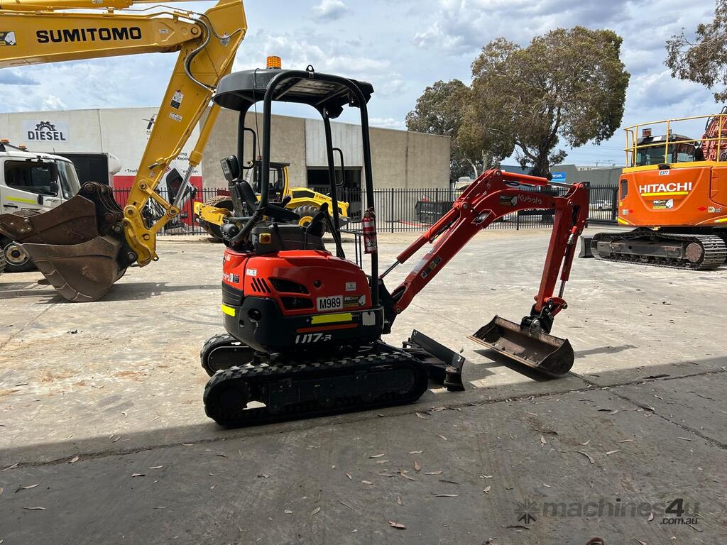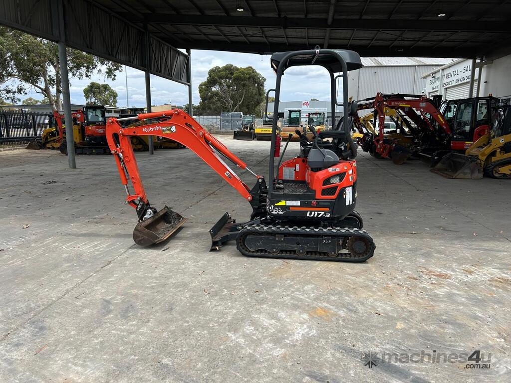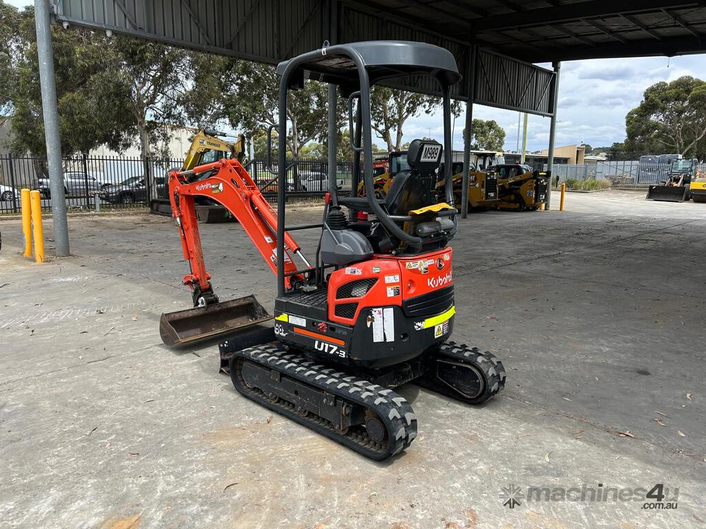 USED 2023 KUBOTA U17-3 (M989) 1.7T ZERO TURN MINI-EXCAVATOR WITH LOW 780 HRS. COMES WITH HALF HITCH, MUD BUCKET, 2 x DIG BUCKETS, HAMMER AND AUGER HYDRAULIC PIPING, DOZER BLADE, EXPANDABLE UNDERCARRIAGE WITH GOOD RUBBER TRACKS, WORK LIGHTS, FIRE EXTINGUISHER, ONE OWNER, FULL SERVICE HISTORY, FULLY SERVICED AND READY FOR WORK. AUSTRALIAN DELIVERED MARCH 2023, COMES WITH BALANCE OF FACTORY WARRANTY TO MARCH 2026.