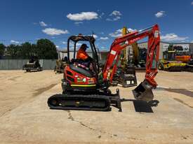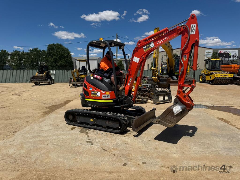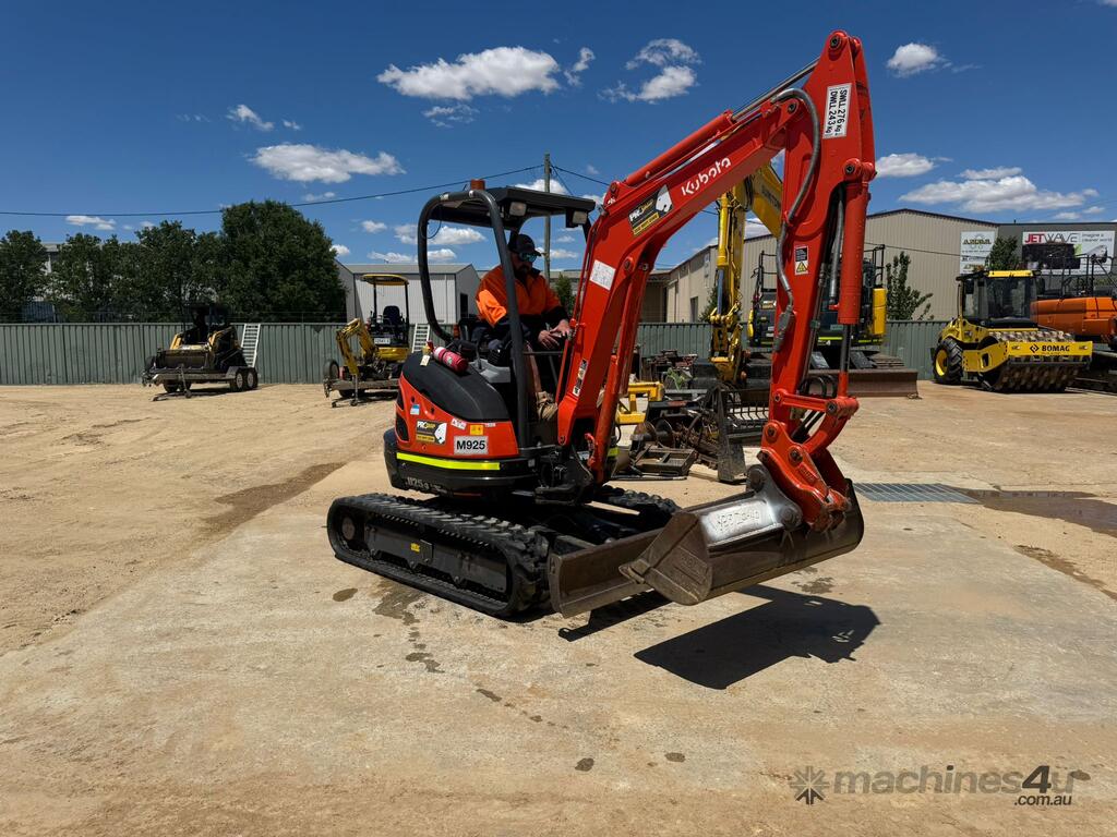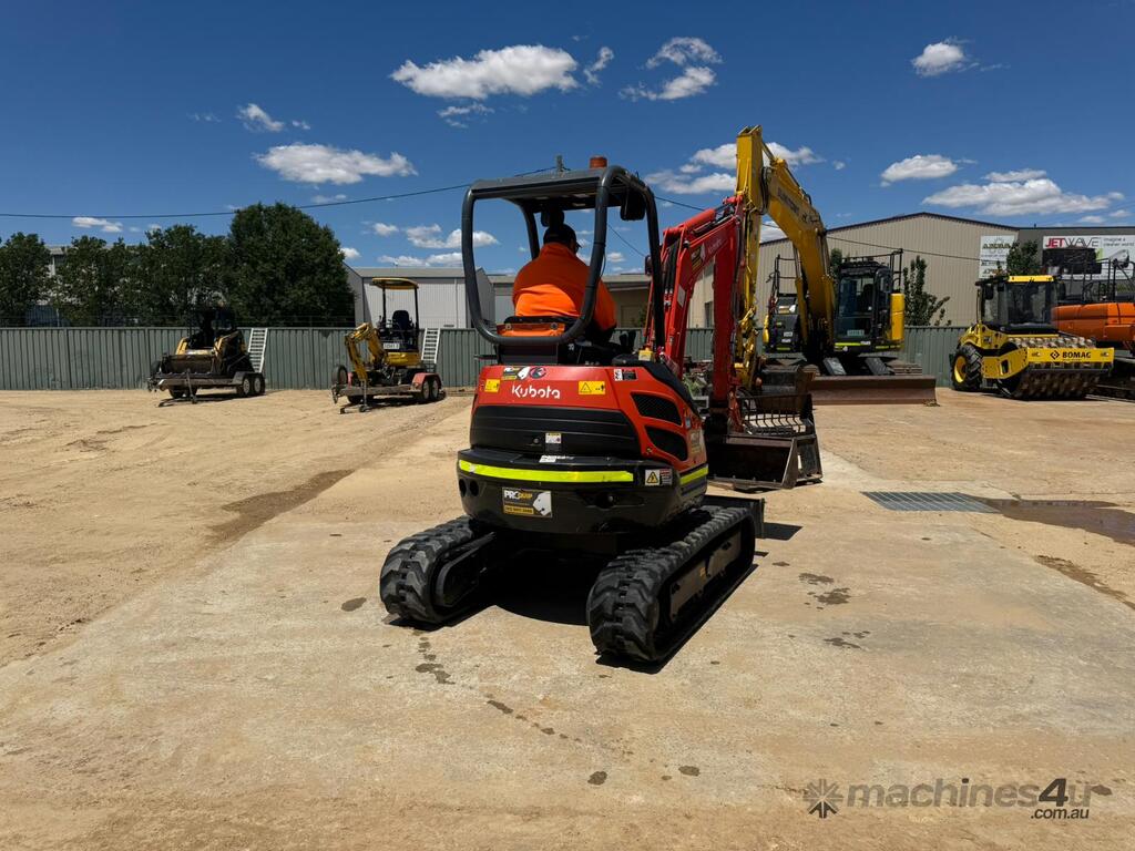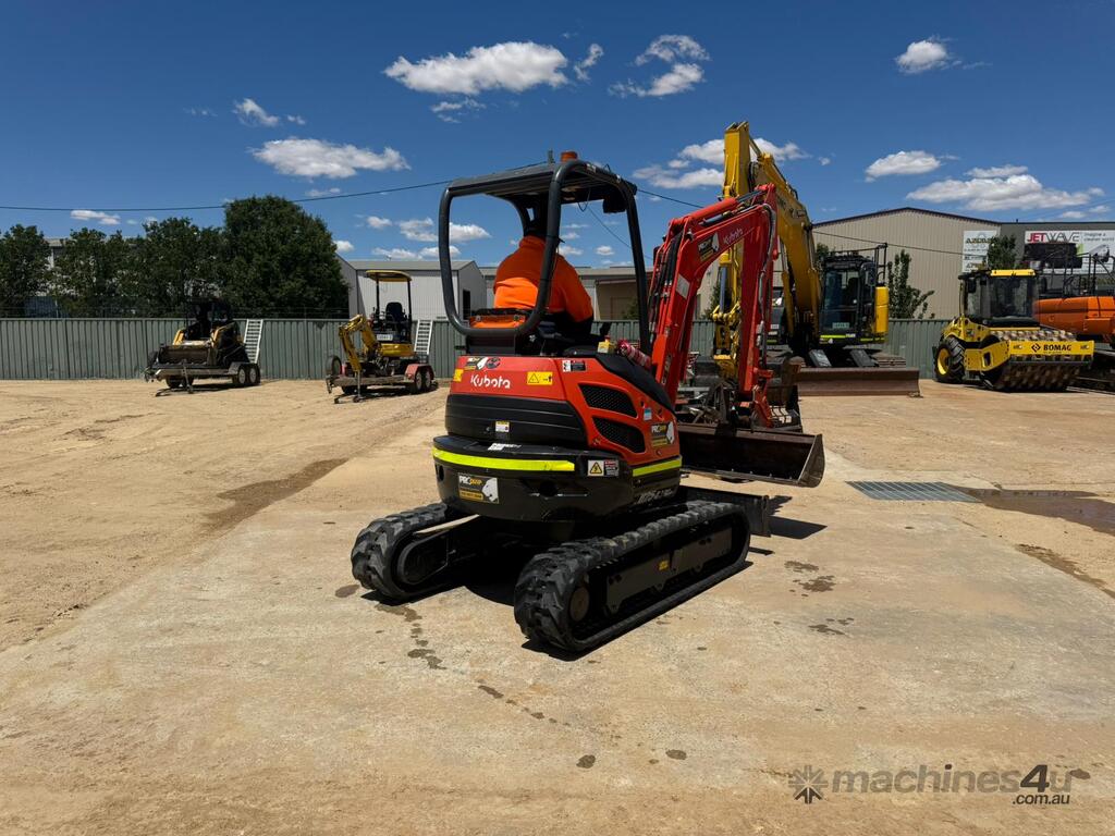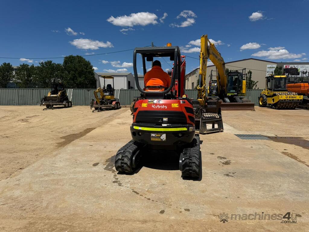 USED 2023 KUBOTA U.6T ZERO TAIL MINI-EXCAVATOR (M925) WITH LOW 700 HRS. OPEN ROPS CANOPY, HYDRAULIC HITCH, 2 x DIG BUCKETS, MUD BUCKET, AUXILIARY PIPING, DOZER BLADE, RUBBER TRACKS, 2600KG OPERATING WEIGHT, FULL SERVICE HISTORY AND CIVIL SPEC. BALANCE OF FACTORY WARRANTY TO 20/05/2026