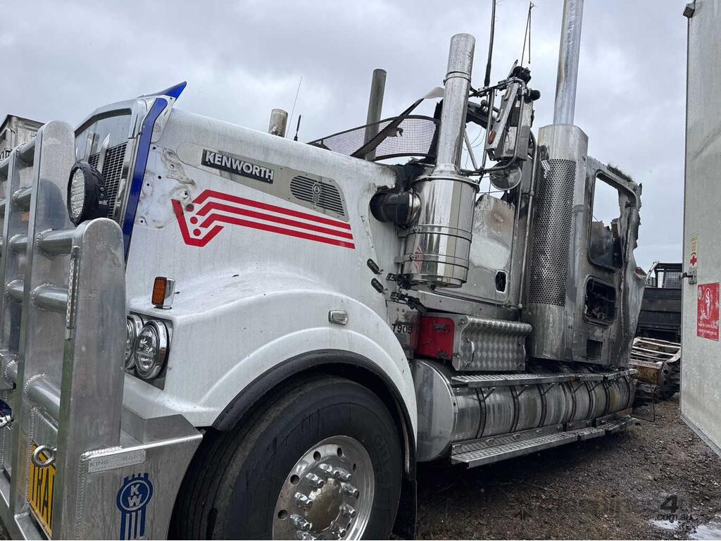 CP: CIRCA 2023,Kenworth,T909,6x4 Sleeper Cab Prime Mover,Unknown,airbags,6 Cyl,Diesel,Odometer not visible,Hourmeter not visible,Colour: Burnt,Rego. No: NP(009MCO), Unregistered QLD,VIN: 6F5000000PA477968,Sold with No Plates,WOVR Status: WOVR N/A,Incident Type: Fire